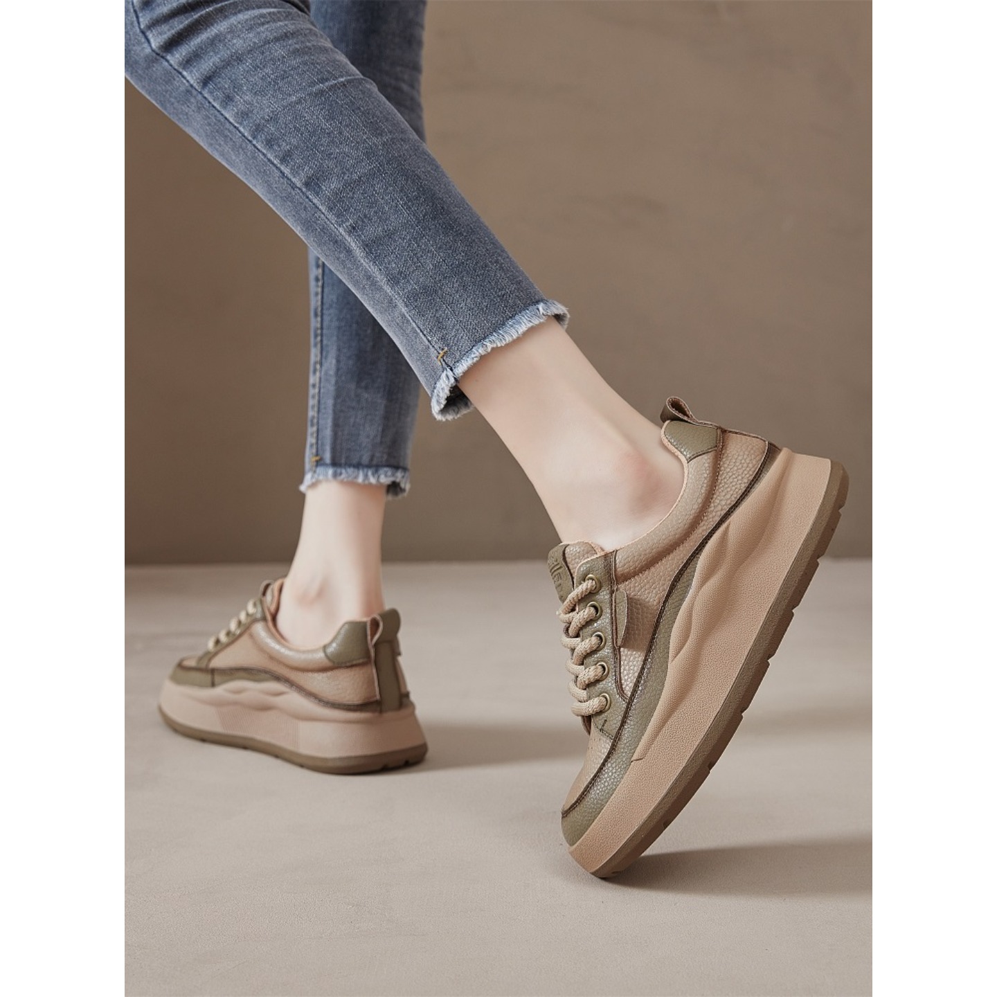 SUNVIBE复古真皮休闲板鞋女2025春秋韩版百搭运动老爹鞋纯皮女鞋