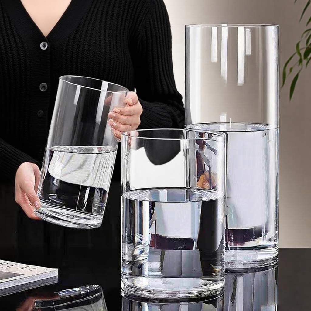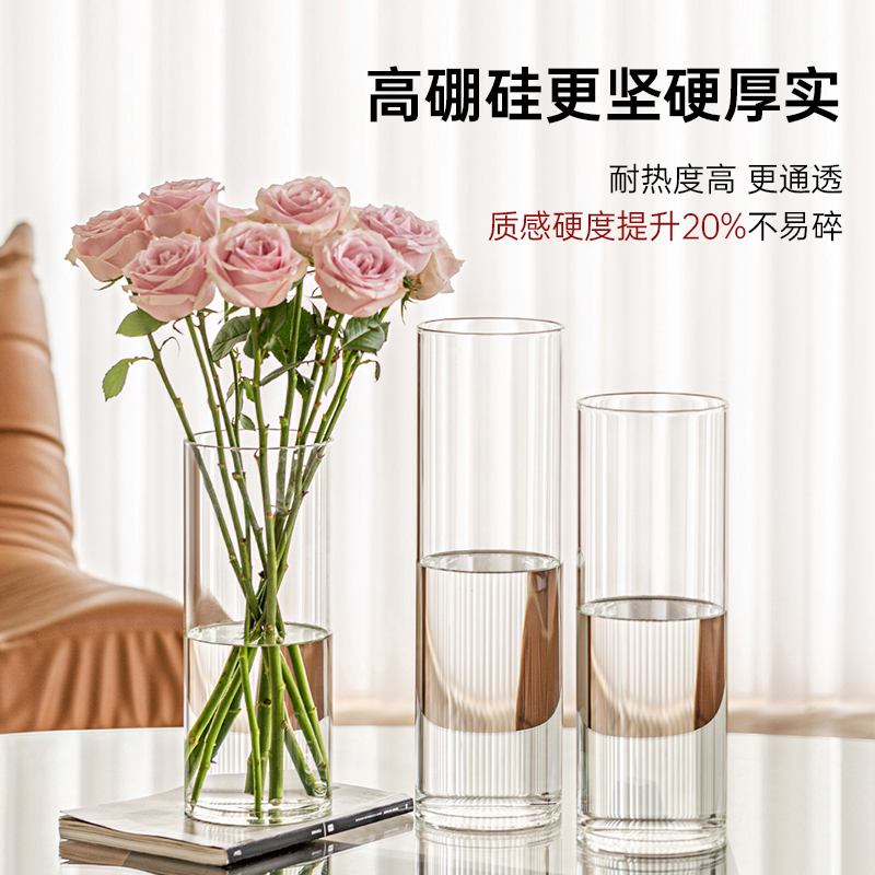 花瓶玻璃轻奢高级感摆件客厅富贵竹水培绿植插花透明直筒醒花桶