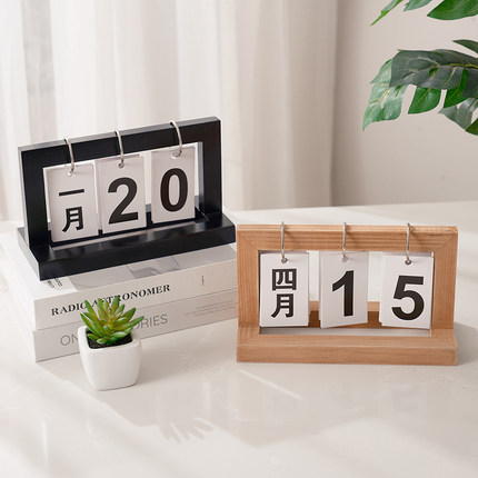 木质日历ins创意简约万年历玄关桌面办公中文台历翻页装饰小摆件