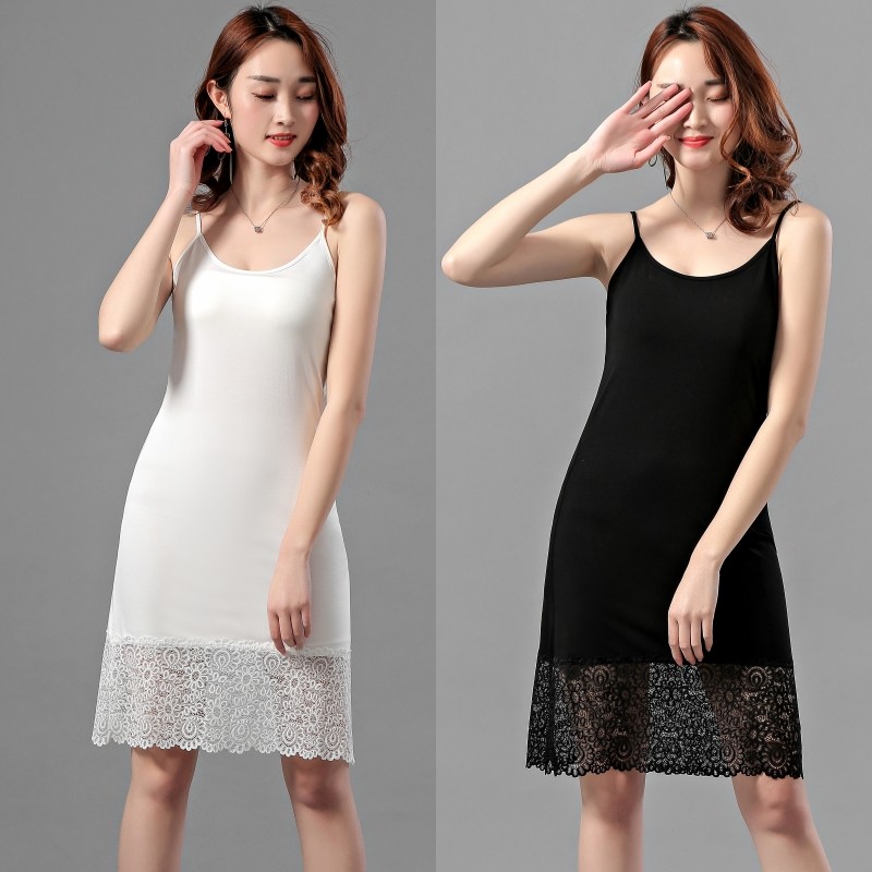 莫代尔中长款吊带背心裙女内搭蕾丝衬裙睡裙修身黑色吊带裙打底裙
