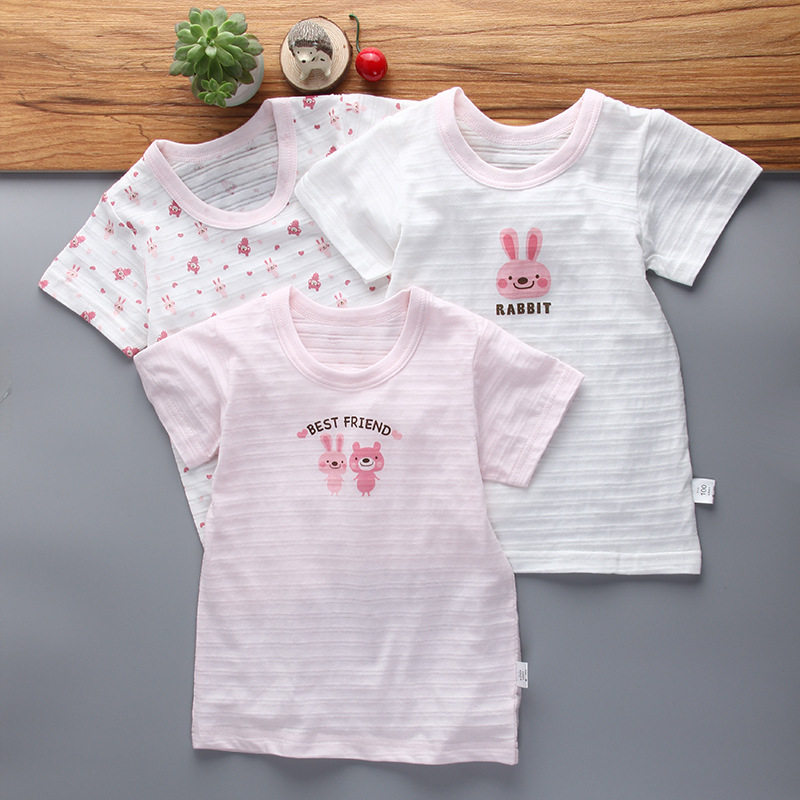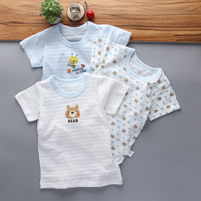 日系儿童纯棉短袖t恤宝宝男童女童全棉竹节棉半袖薄款上衣3件装