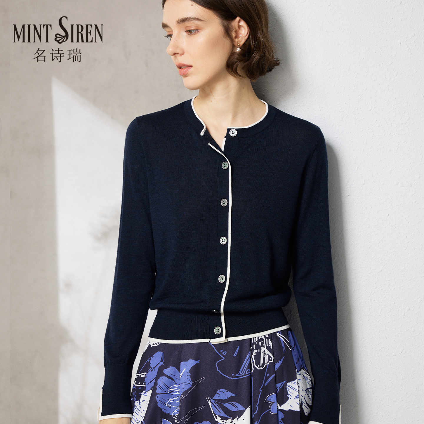 2025秋冬新品圆领精纺纯羊毛针织开衫女长袖薄款宽松薄毛衣小外套