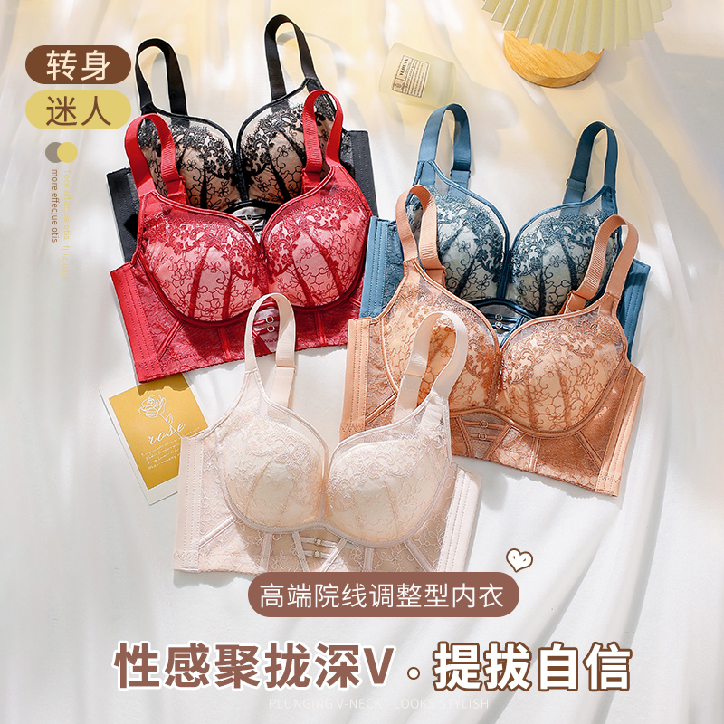 秋冬季调整型防外扩内衣女小胸聚拢上托收副乳防下垂性感文胸套装