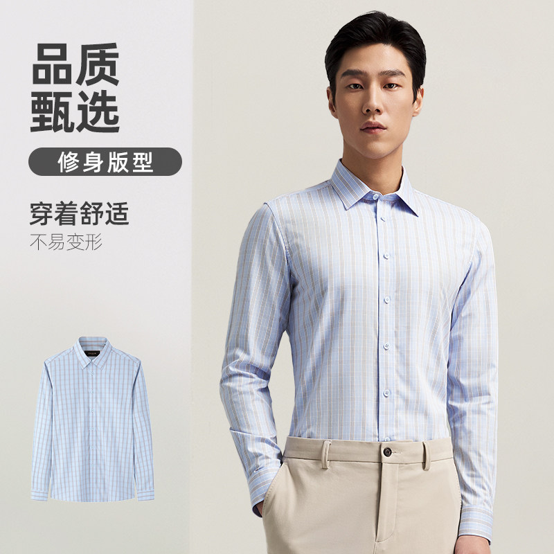 【桑蚕丝免烫】雅戈尔官方春秋新品商务休闲通勤格纹长袖衬衫男