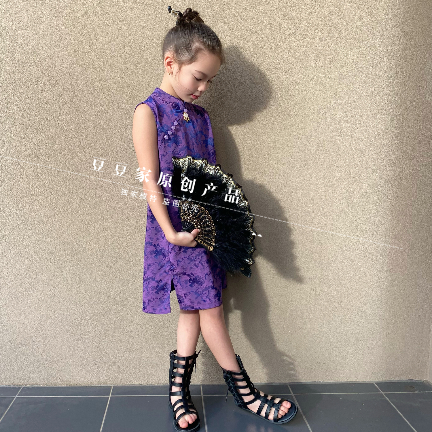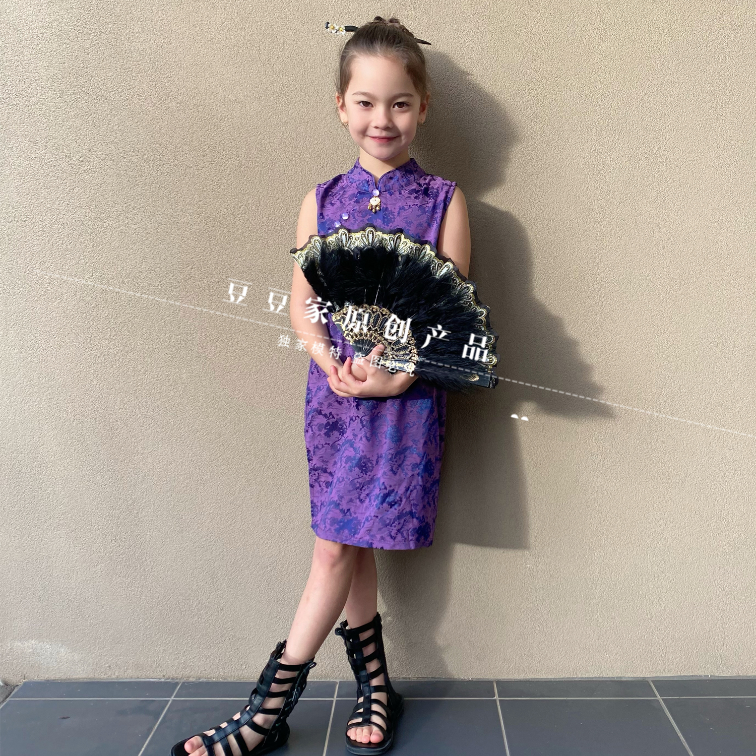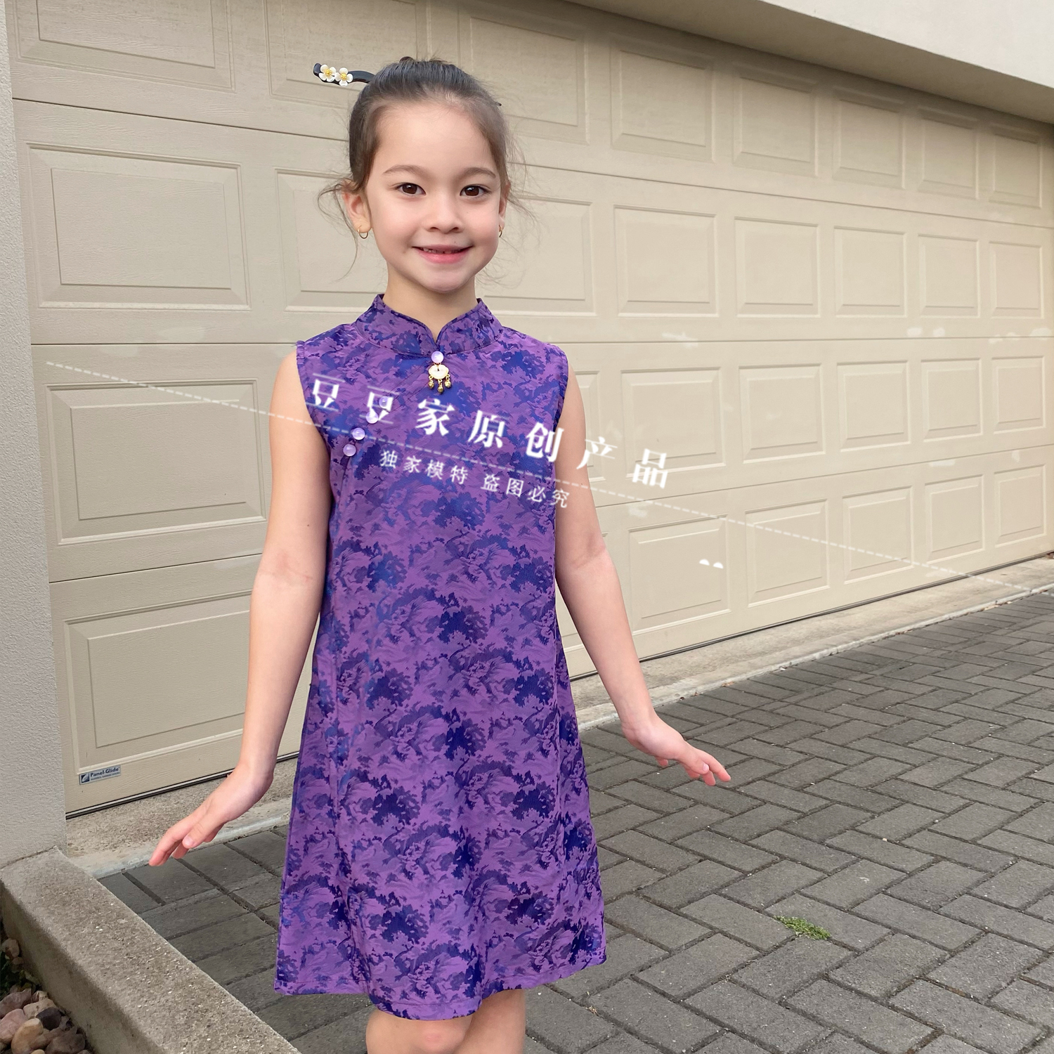 儿童高贵紫旗袍2025夏季旗袍儿童新中式无袖女童旗袍提花薄连衣裙