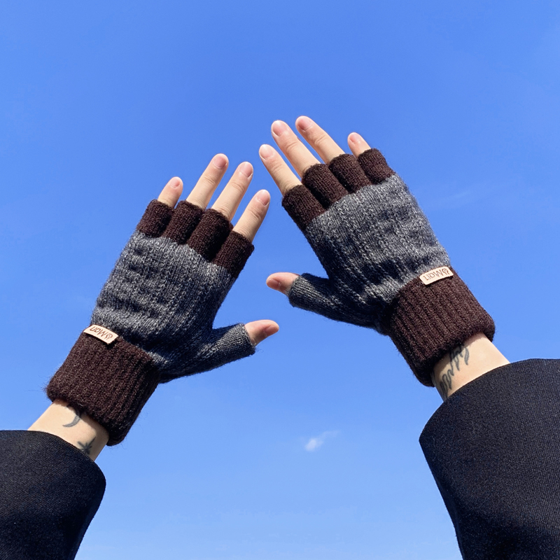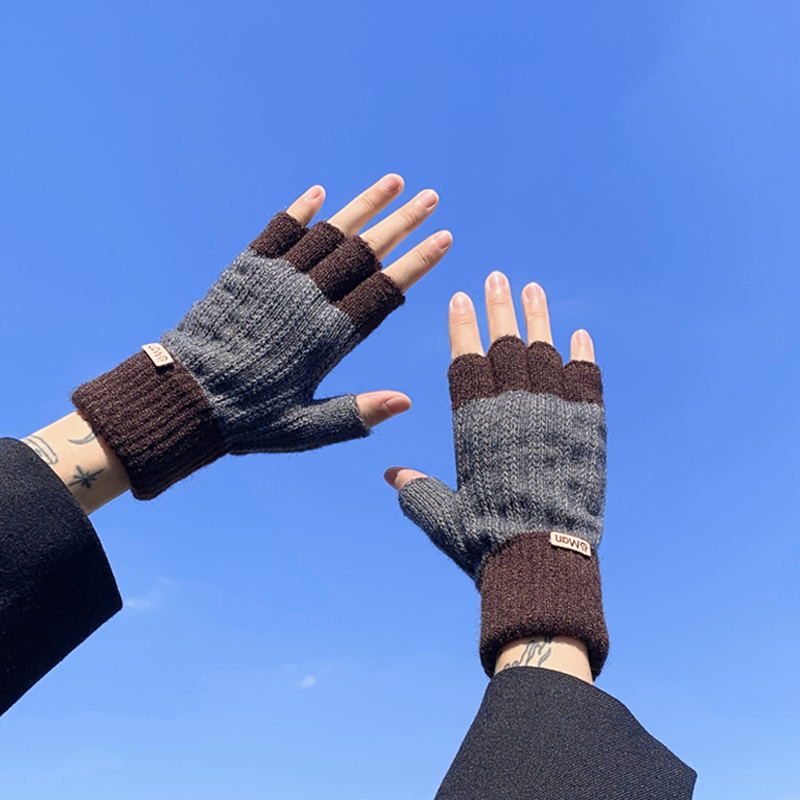 半指手套男女秋冬季露指学生写字打字骑行可触屏毛线针织保暖漏指