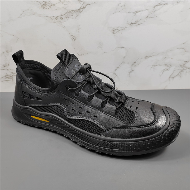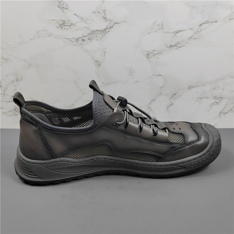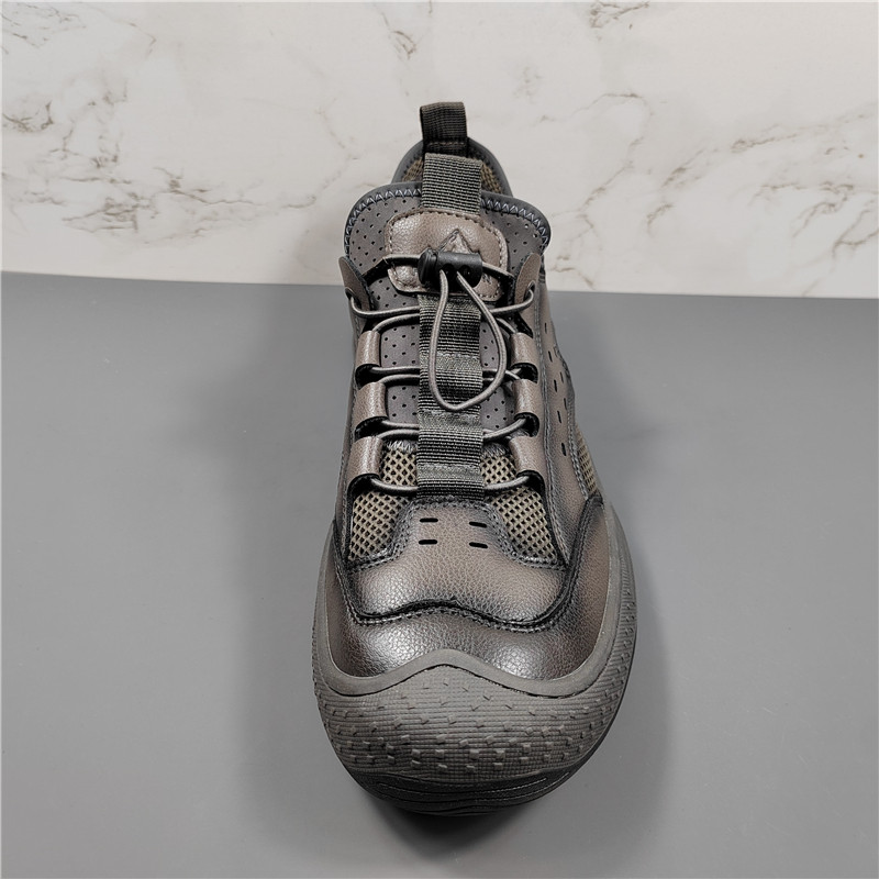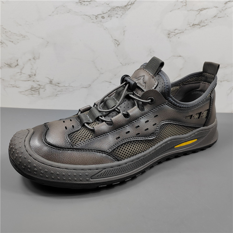 商场同款真皮网面透气休闲鞋男2025夏季新款户外镂空一脚蹬运动鞋