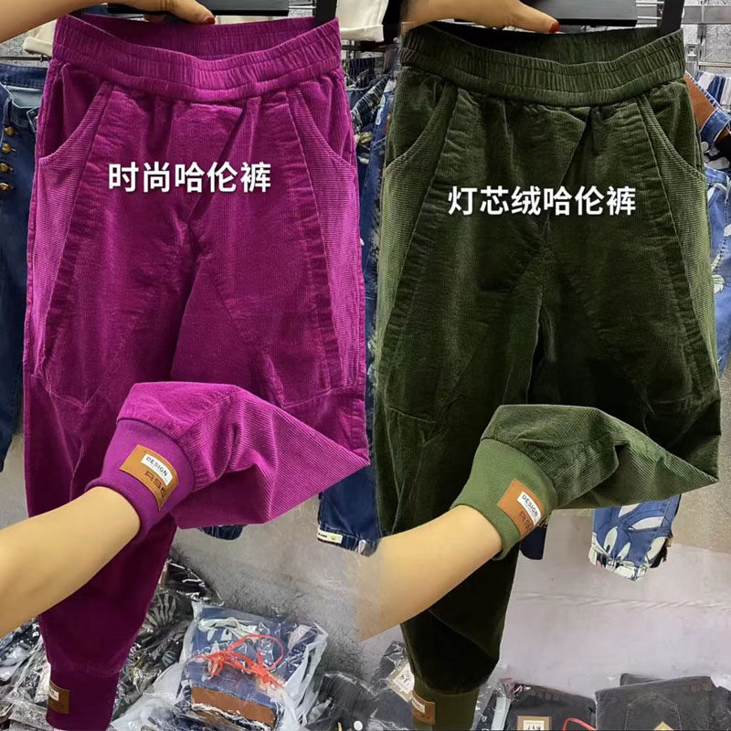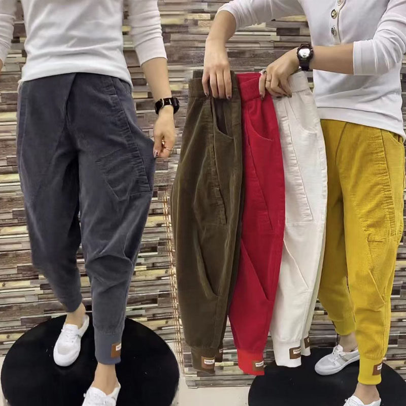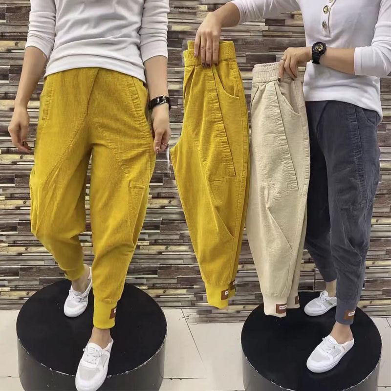 欧货春秋新款灯芯绒黄色哈伦裤修身显瘦时尚老爹裤亲肤减龄萝卜裤