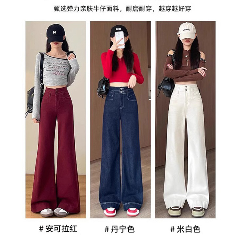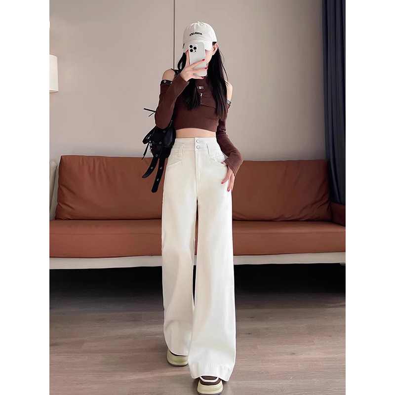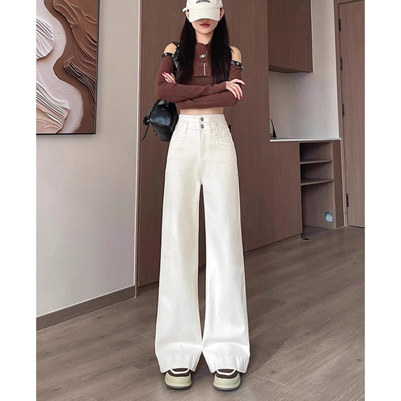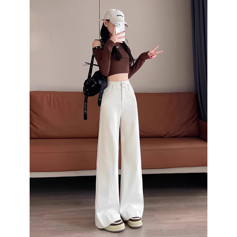 白色微喇牛仔裤女2024秋冬高腰显瘦宽松休闲加绒不贴腿遮胯阔腿裤