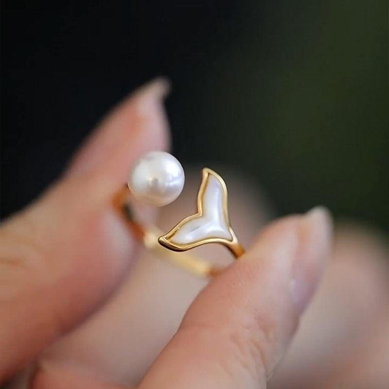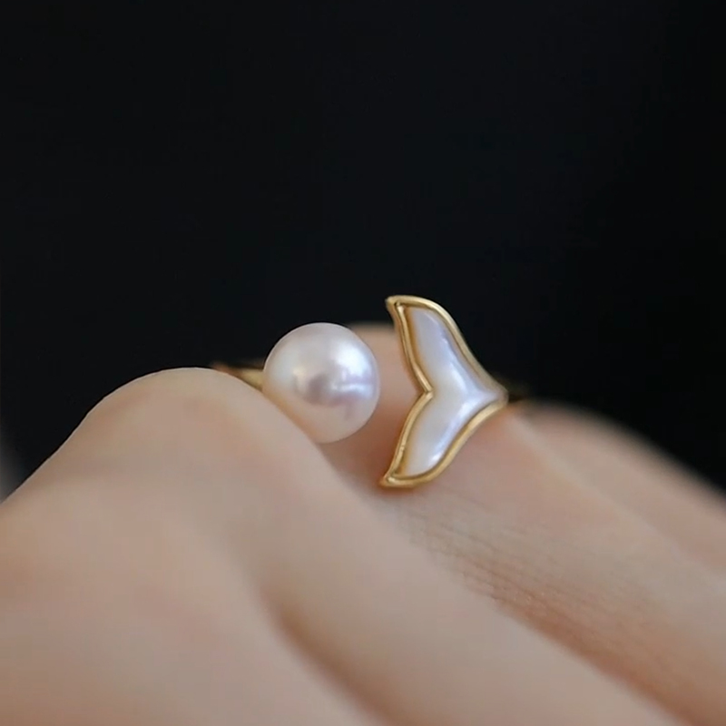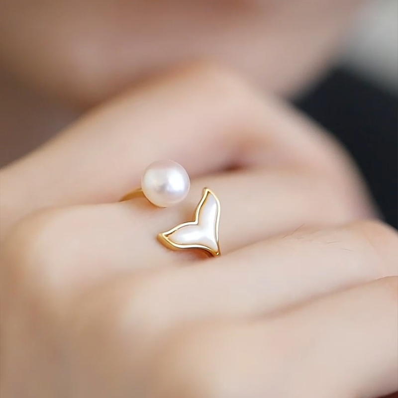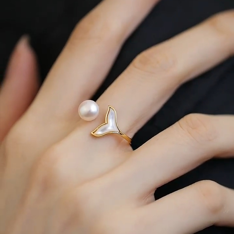 珍氏珠宝天然淡水珍珠戒指女 时尚小众轻奢鱼尾可调节母贝开口戒