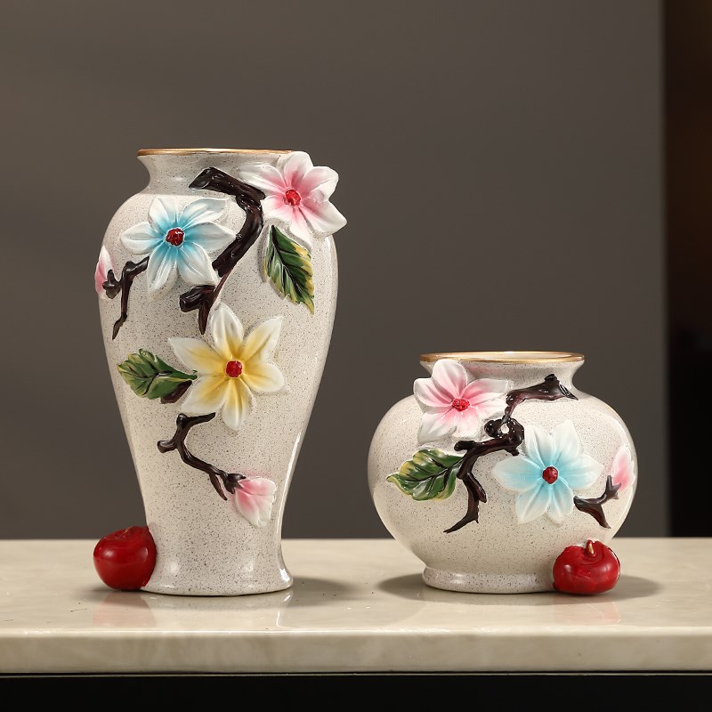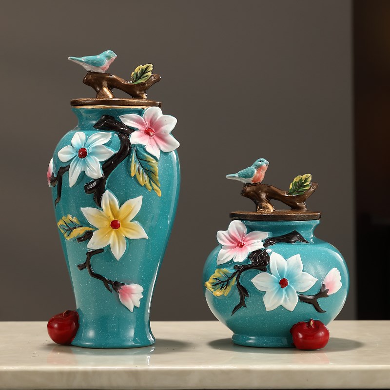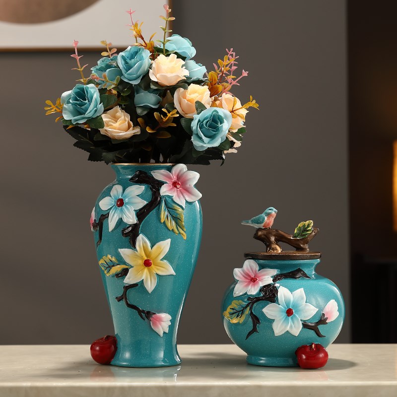 欧式中珐琅彩花瓶陶瓷花手工描金轻奢高级感摆件玄关柜装饰储物罐