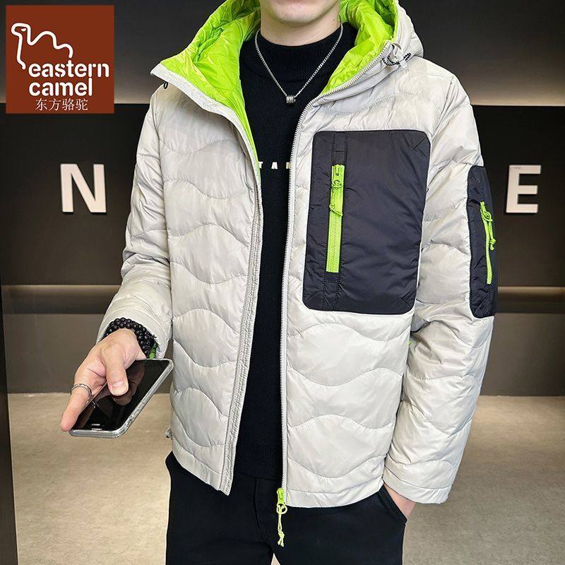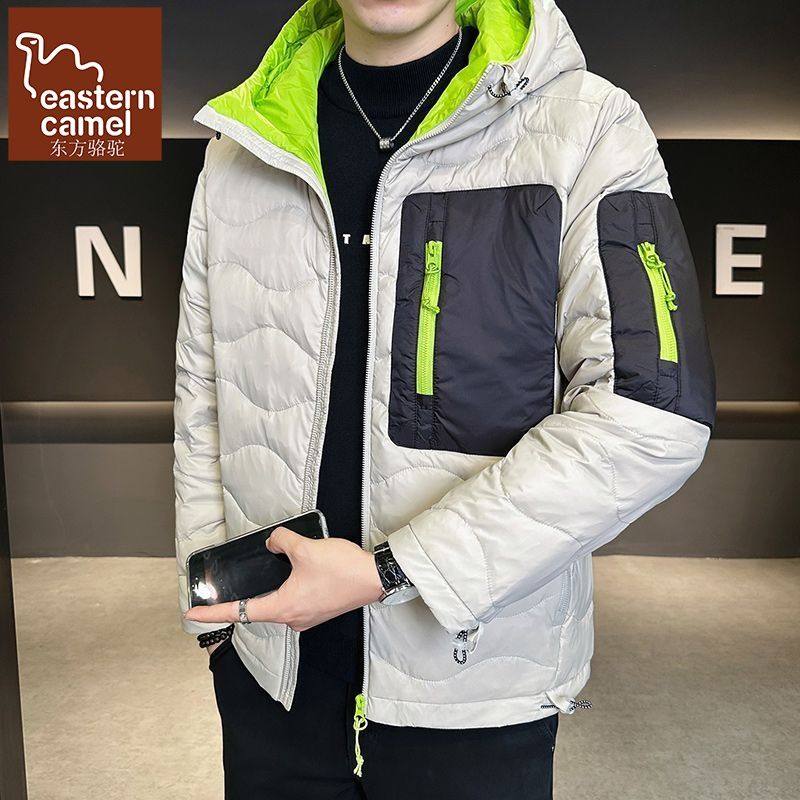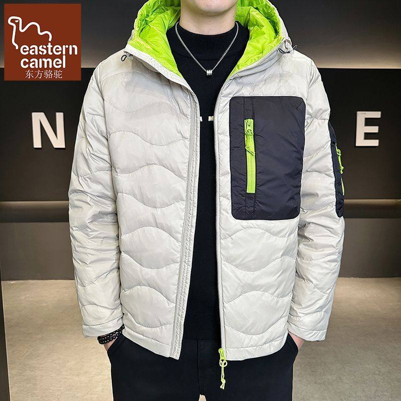 东方骆驼2025新款情侣波浪纹撞色羽绒服男女冬季时尚连帽短款外套