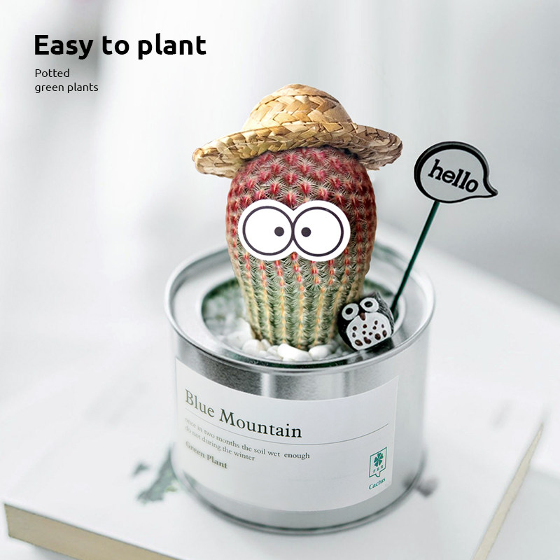 ins铁罐仙人掌创意可爱仙人球办公室桌面植物多肉小盆栽绿植礼物