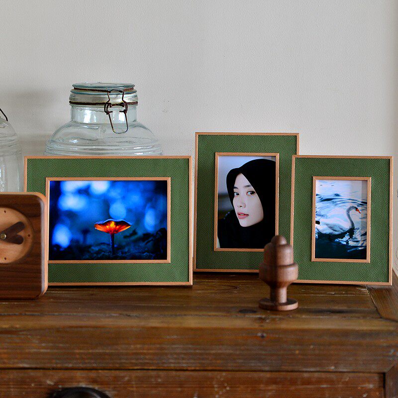 皮革实木磁吸相框架北欧摆台证书六6寸洗照片定制7寸毕业结婚礼物