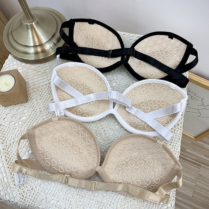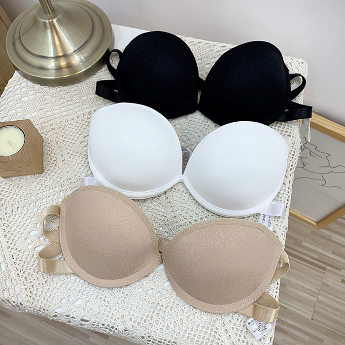 后背一根带美背小胸聚拢抹胸文胸露背隐形有钢圈无肩带法式内衣女