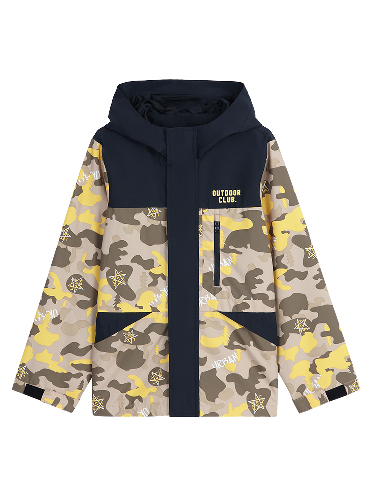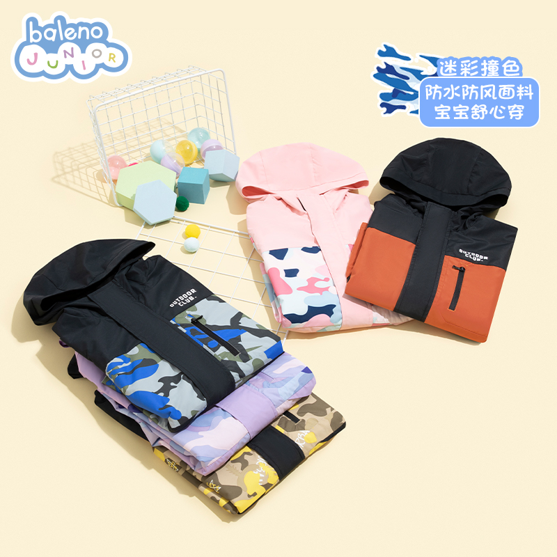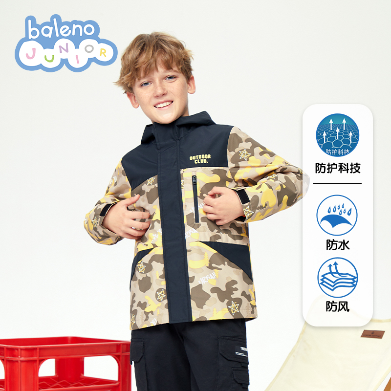 班尼路童装新款中性外套迷彩撞色棉衣连帽保暖防护拉链夹克