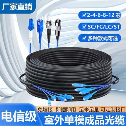 室外单模铠装成品光缆2/4/6/8/12芯光纤线 线SC头免熔接户外四芯架空