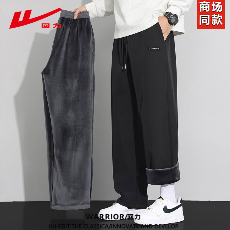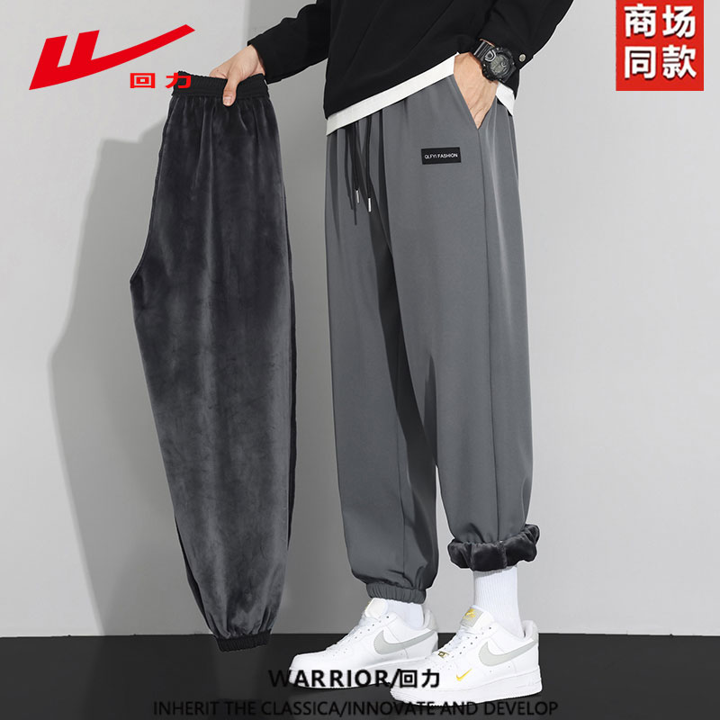 回力保暖加绒裤子男春秋冬季新款棉裤加厚运动卫裤宽松休闲长裤