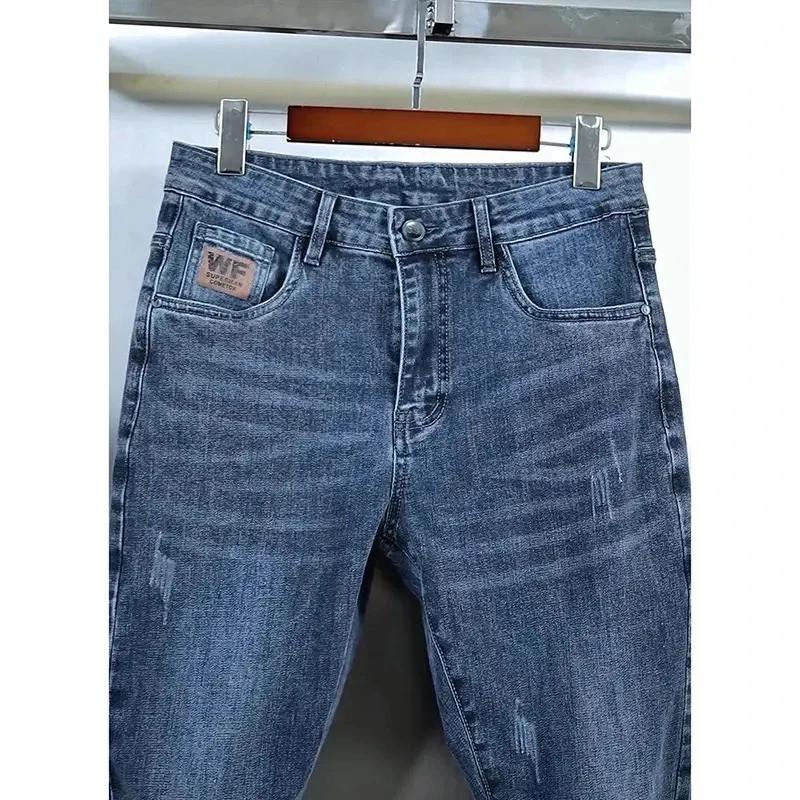 奕鸿精选秋季蓝色男士牛仔裤弹力L直筒潮流休闲水洗修身小脚裤