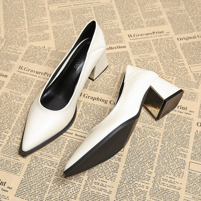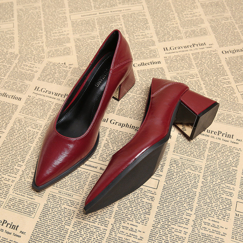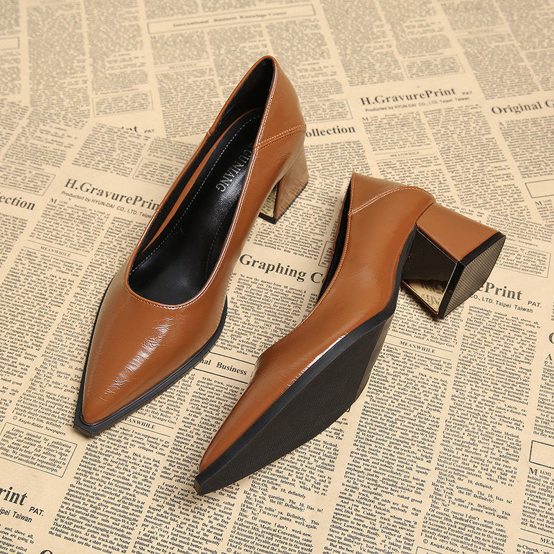 软皮版百搭单鞋女2026年新款春季绝美尖头通勤浅口棕色高跟小皮鞋