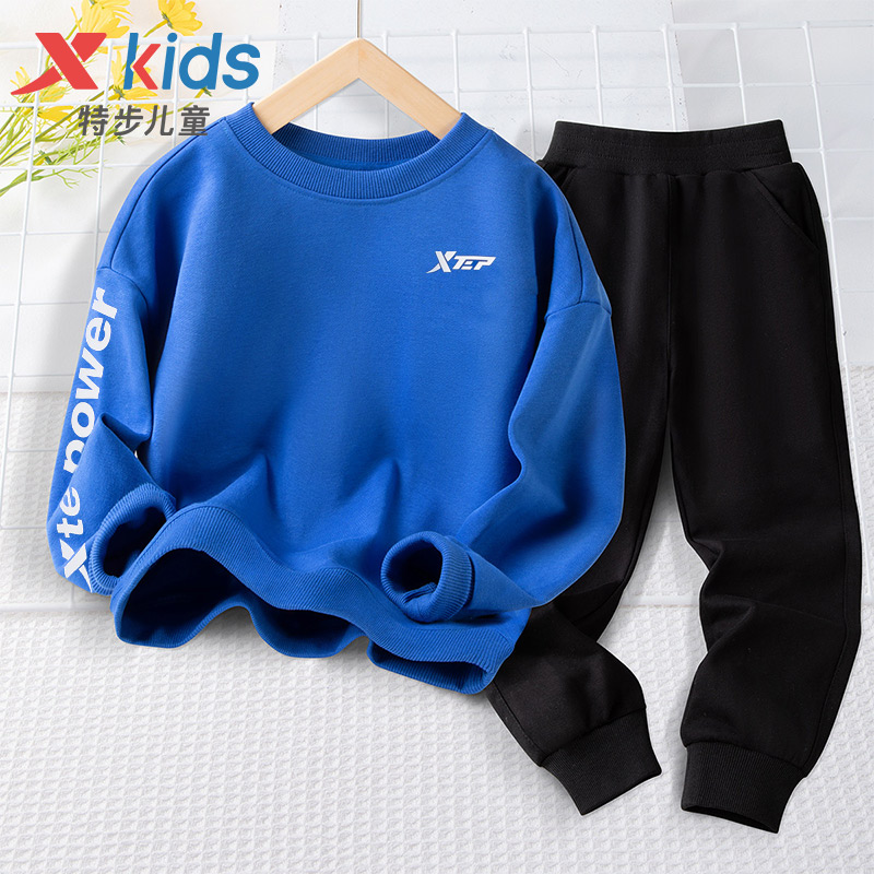特步男童套装春秋季新款儿童运动卫衣裤子两件套女童长袖上衣长裤