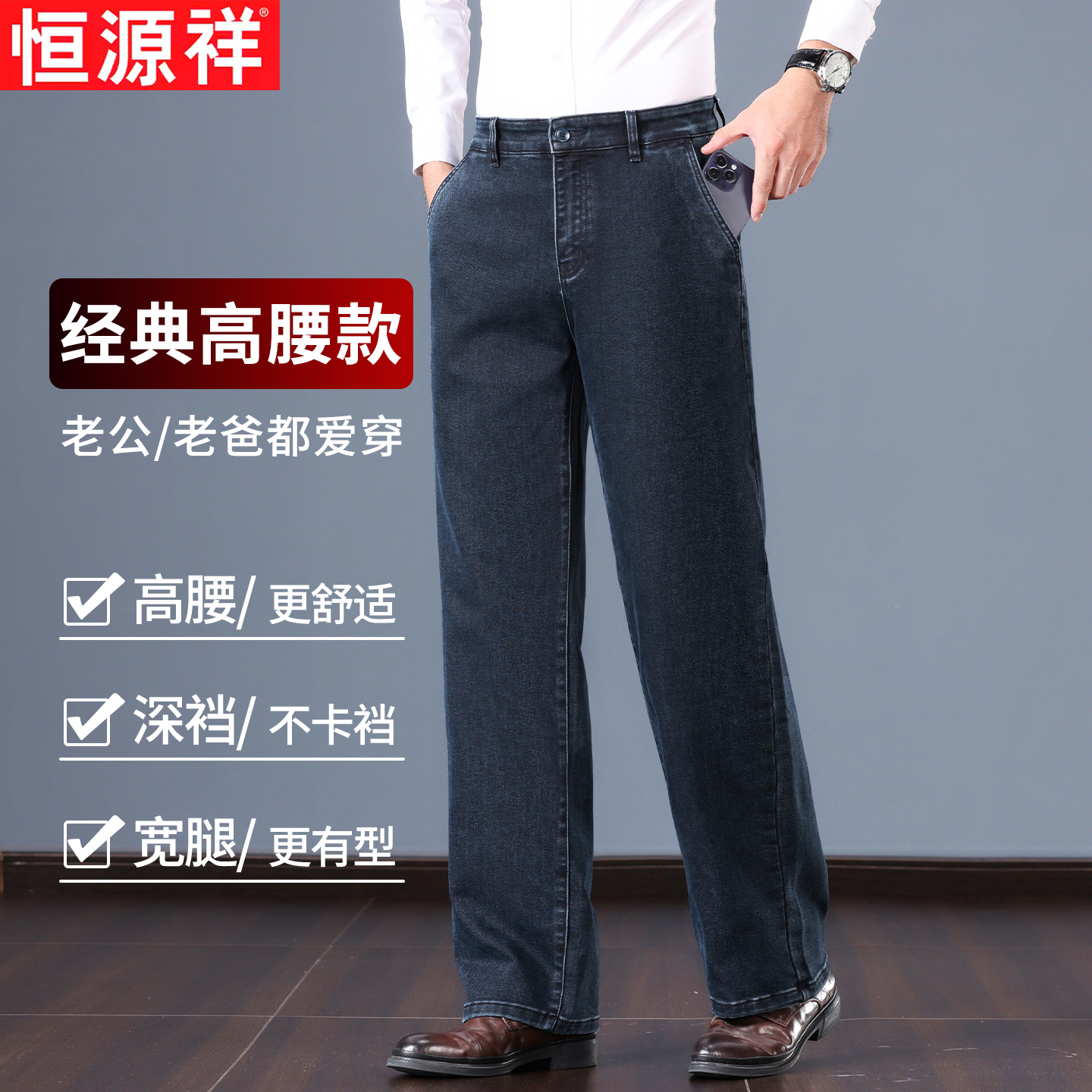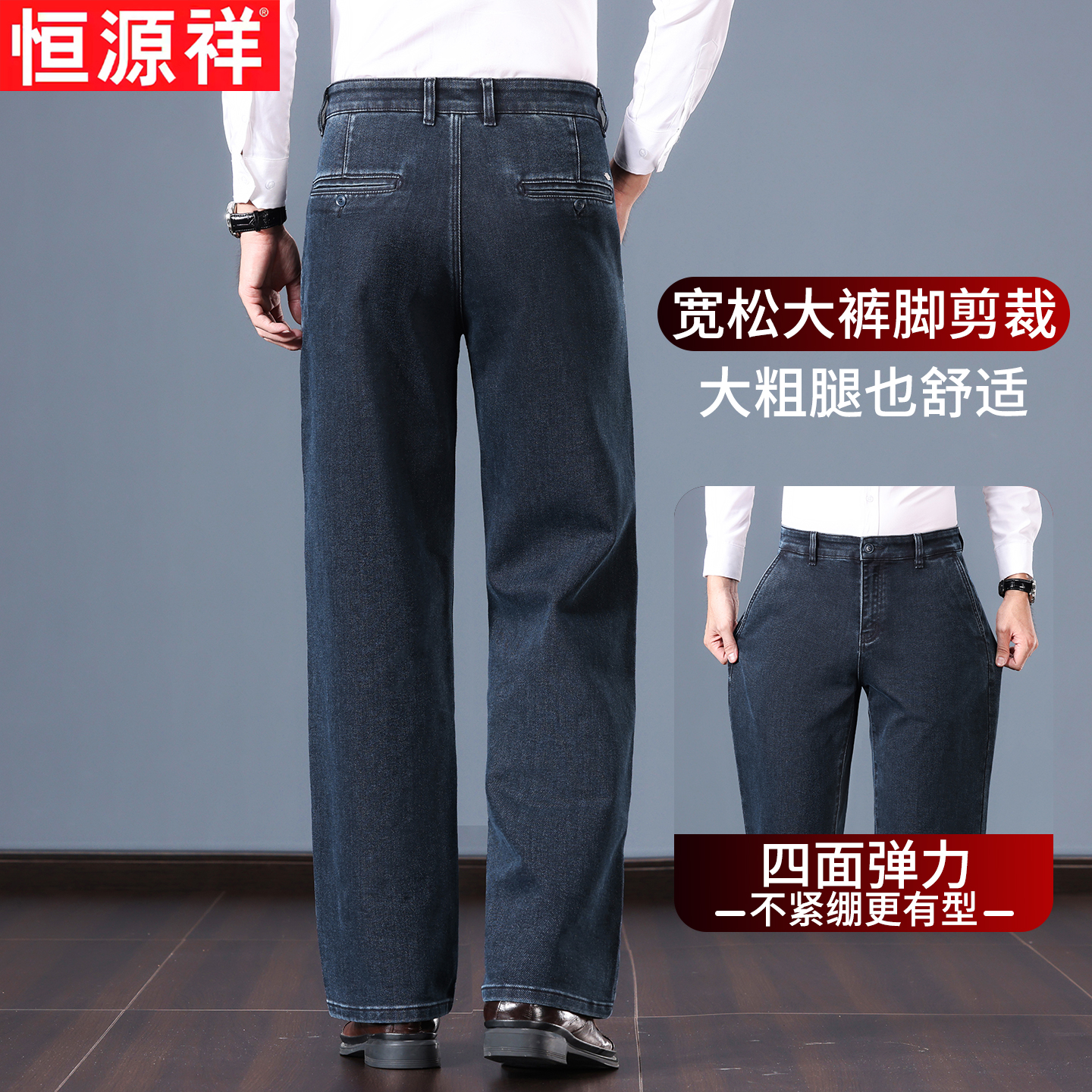 恒源祥牛仔裤阔腿休闲裤男士宽松直筒商务裤子中年爸爸长裤春秋款