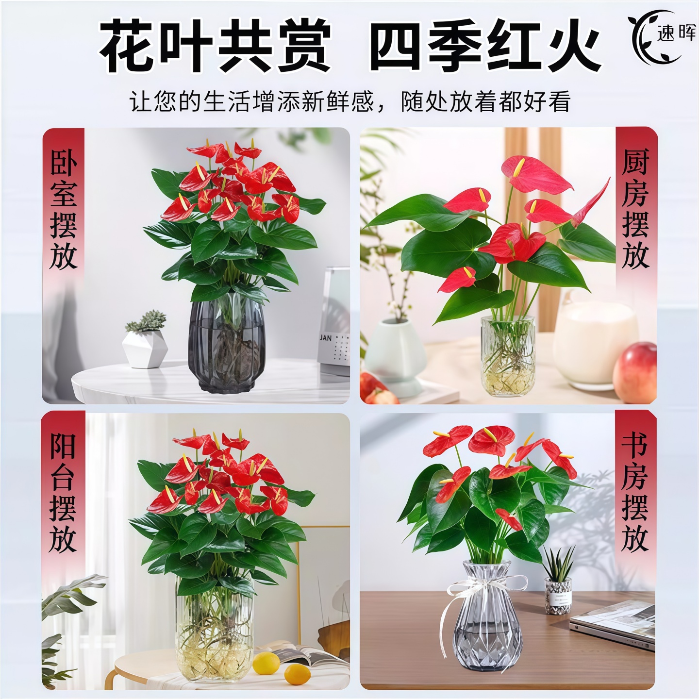 红掌盆栽室内懒人水培植物净化空气四季常青带花客厅桌面摆放绿植