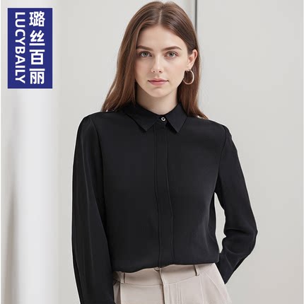 2025新款黑色衬衫女长袖通勤上衣雪纺气质衬衣面试春秋季职业时尚