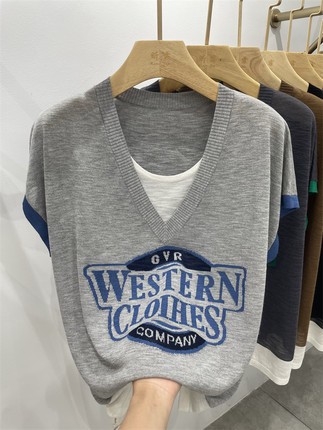 假两件时尚休闲短袖T恤女