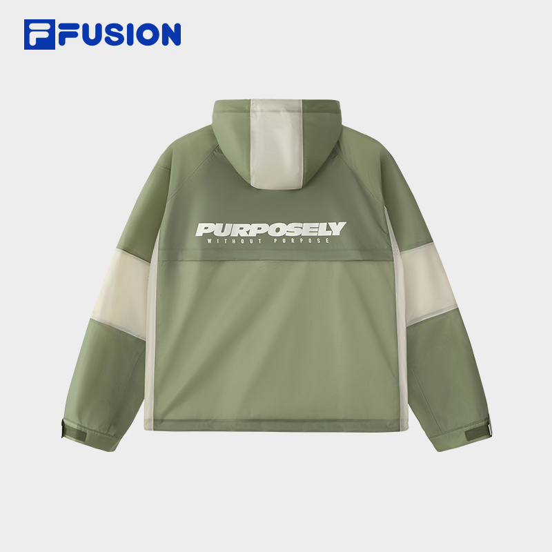 FILA FUSION斐乐潮牌梭织外套男春季男款拼色宽松户外连帽风衣