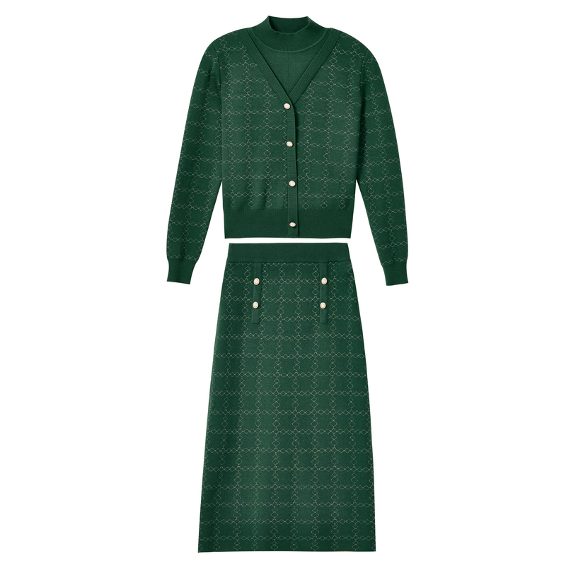 秋水伊人气质优雅针织裙套装假两件2024年冬装新款女装开叉半身裙