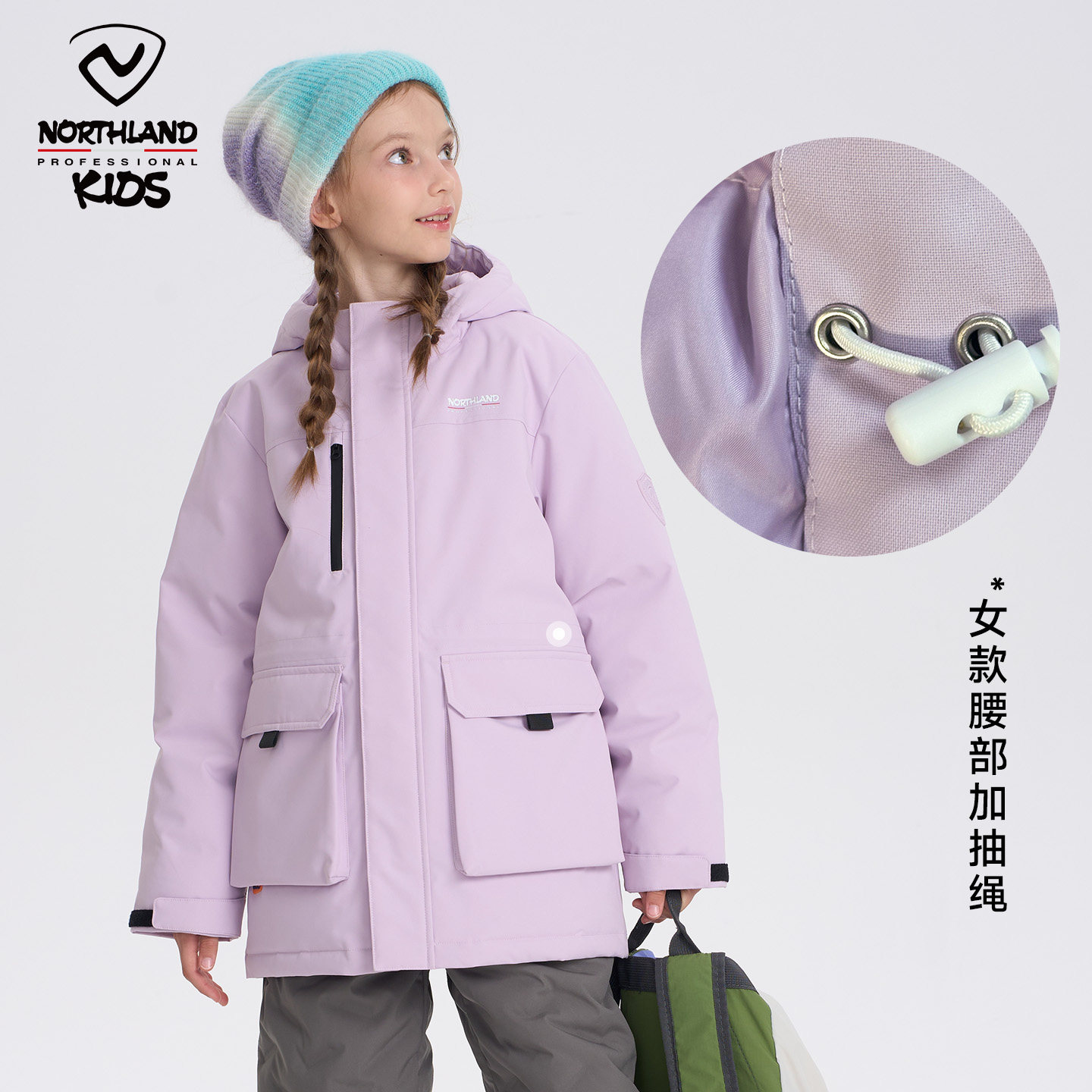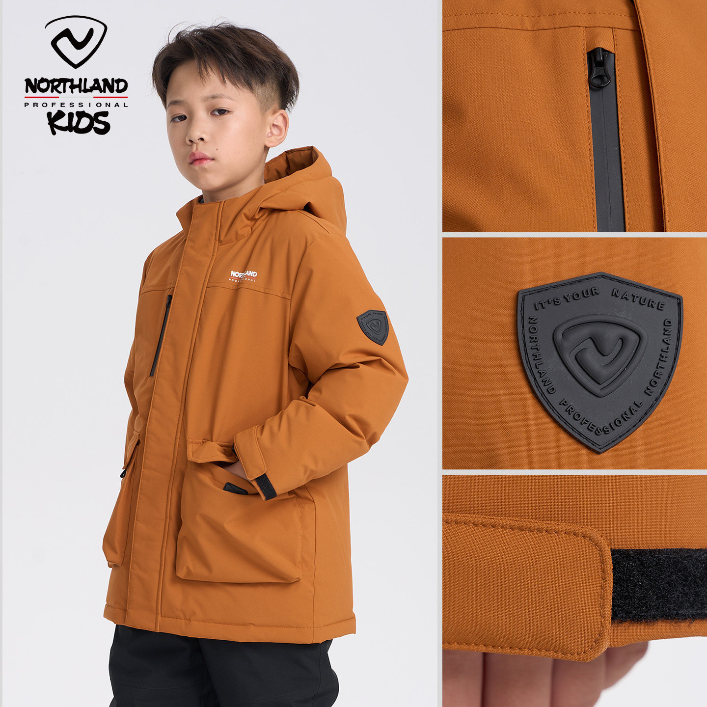 NORTHLAND羽绒服男童户外派克服防风保暖中大童工装连帽冬装外套