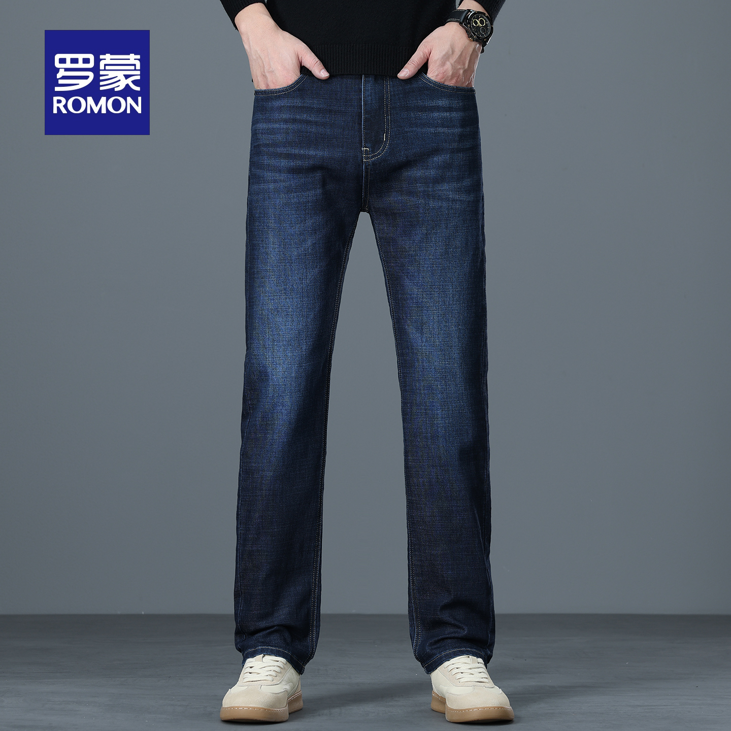罗蒙牛仔裤男士2025新款秋季加厚宽松直筒中年爸爸装休闲长裤子MS