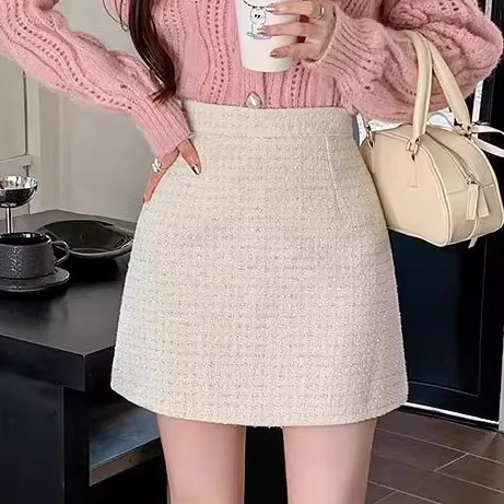 港味风格重工亮片毛呢子半身裙女春秋冬防走光高腰A字裙包臀短裙
