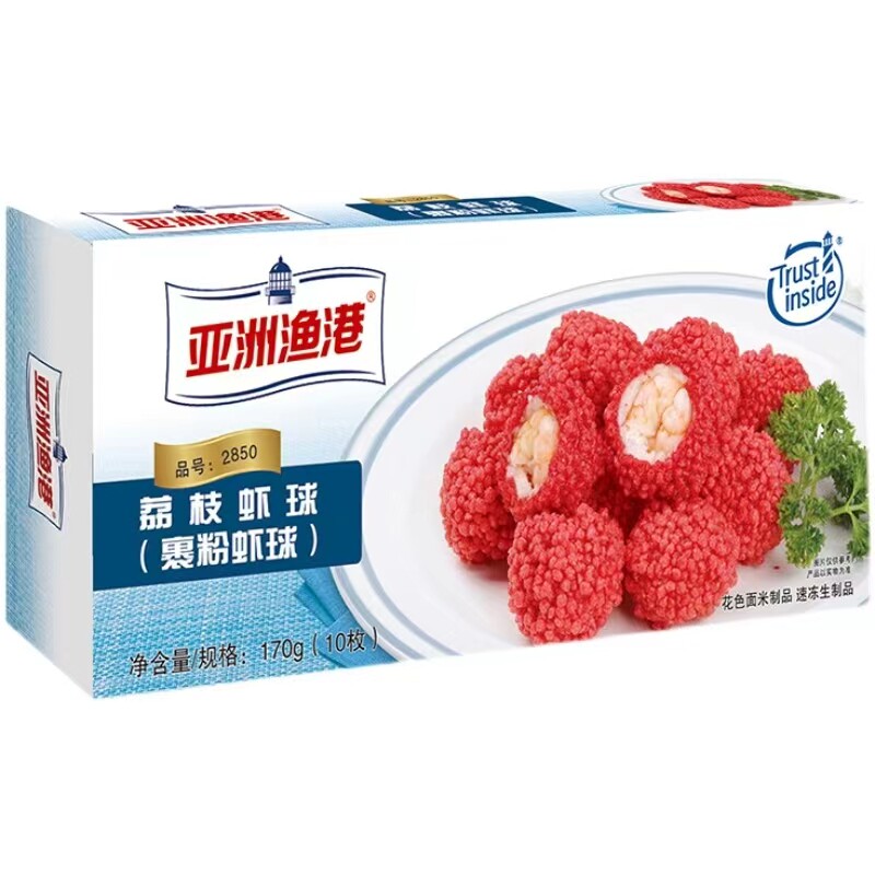 亚洲渔港荔枝虾球170g*3盒网红油炸红尘妃子笑酒店半成品特色菜