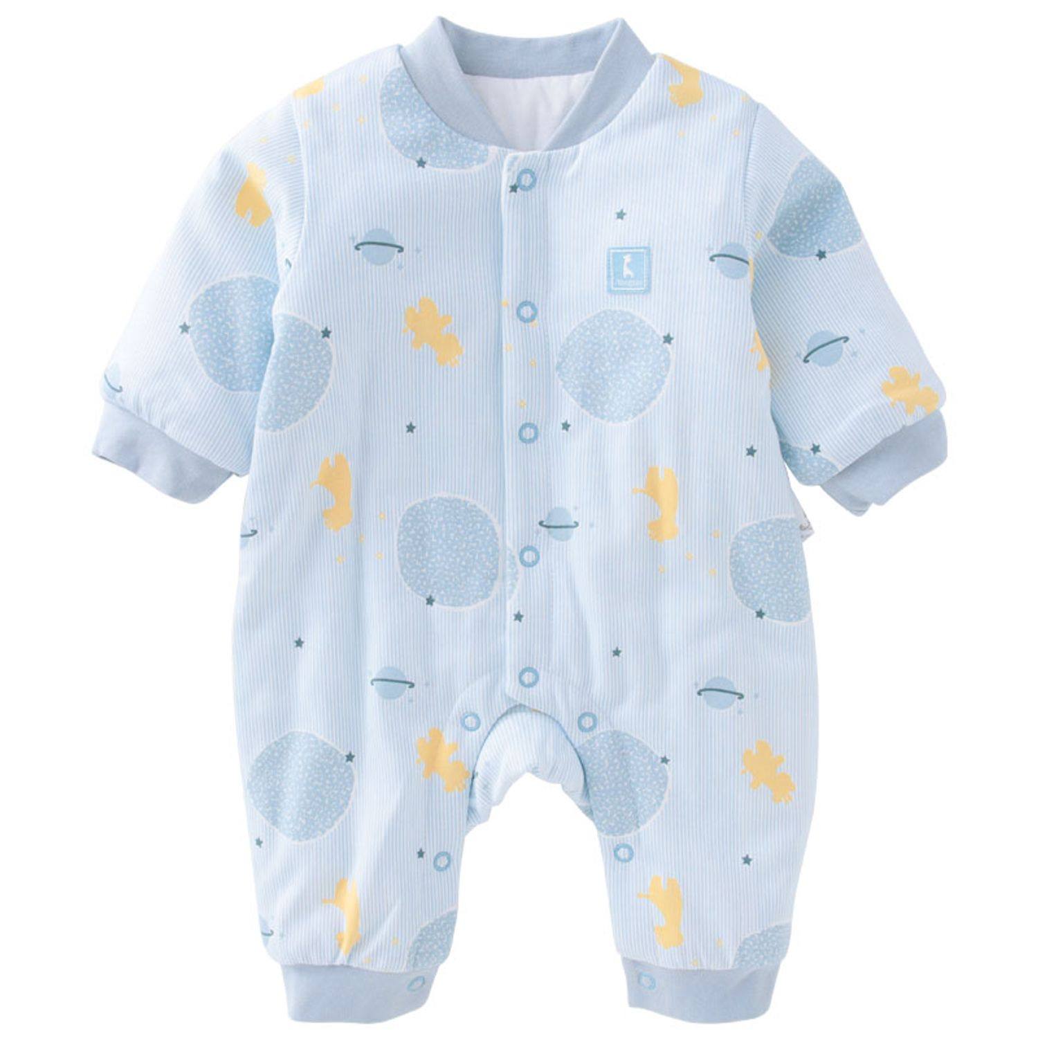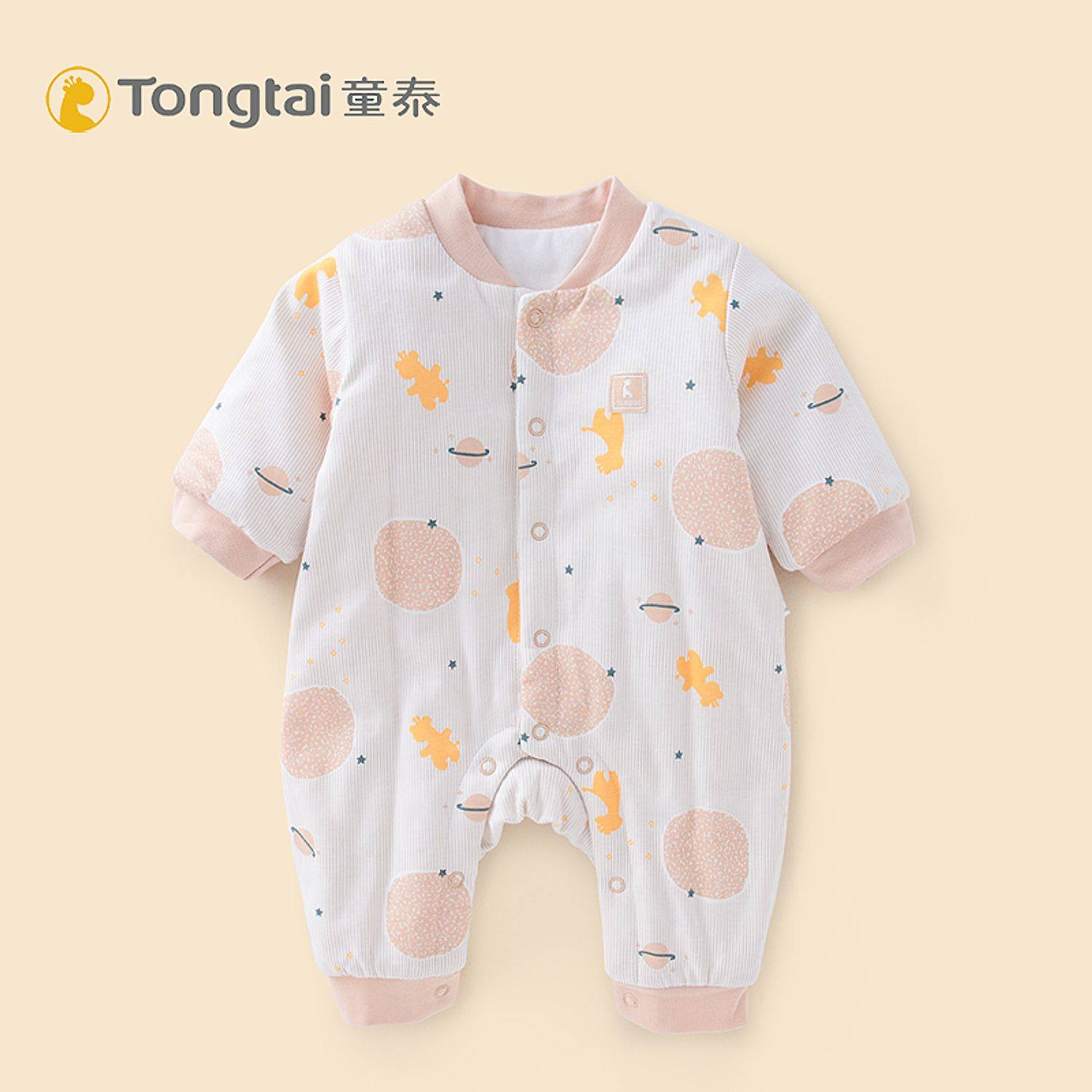 童泰婴儿连体衣春秋纯棉宝宝夹棉保暖连体衣冬季外出棉服哈衣