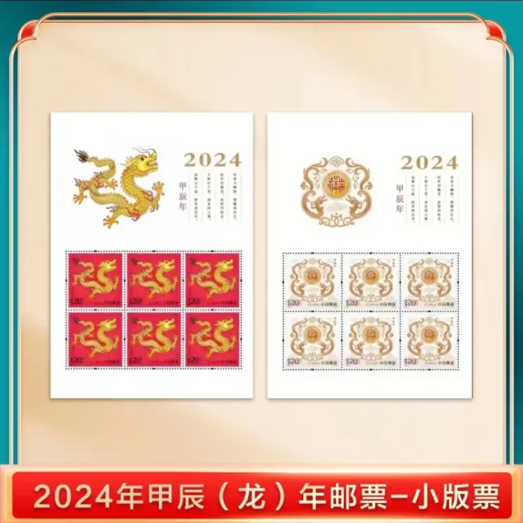2024年龙年生肖邮票龙票甲辰龙年大版票小版票四方连四轮生肖邮票