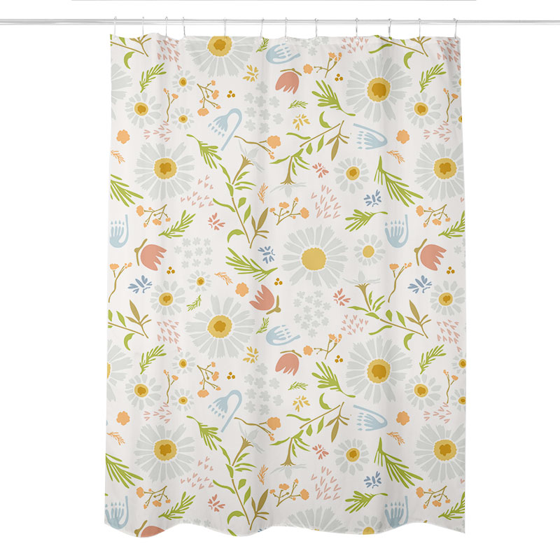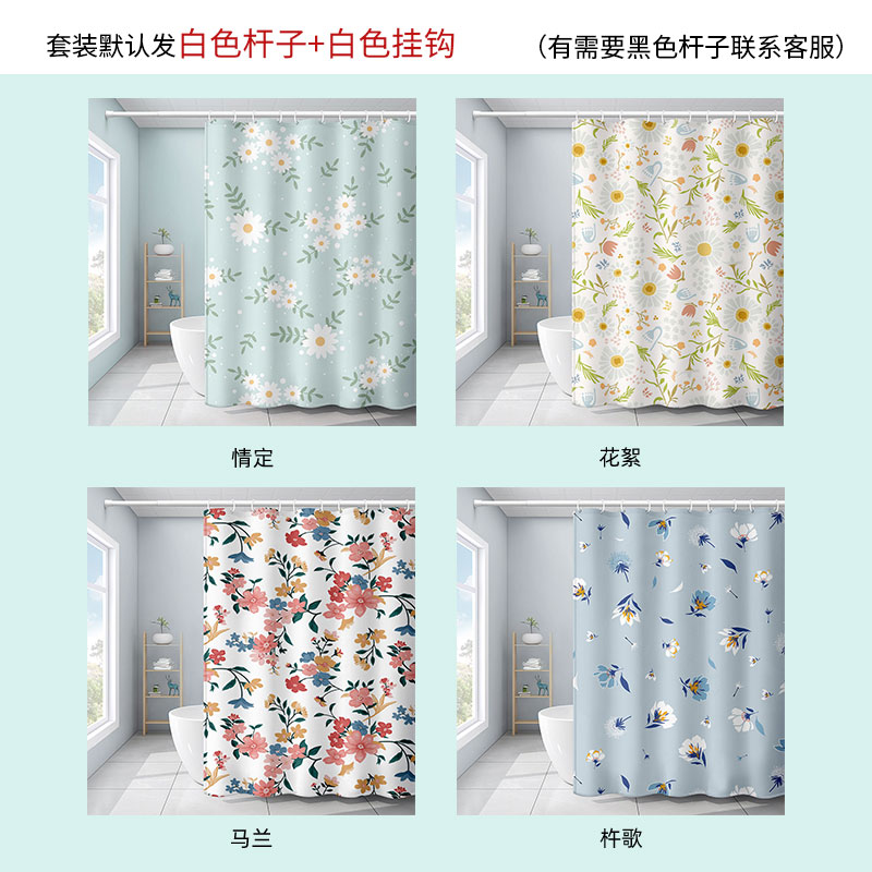 田园风浴帘防水布套装免打孔浴室帘卫生间隔断加厚防霉浴间淋浴帘