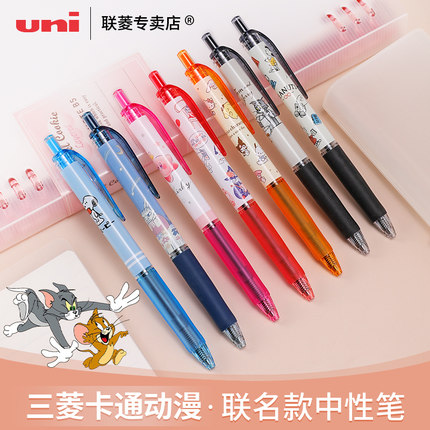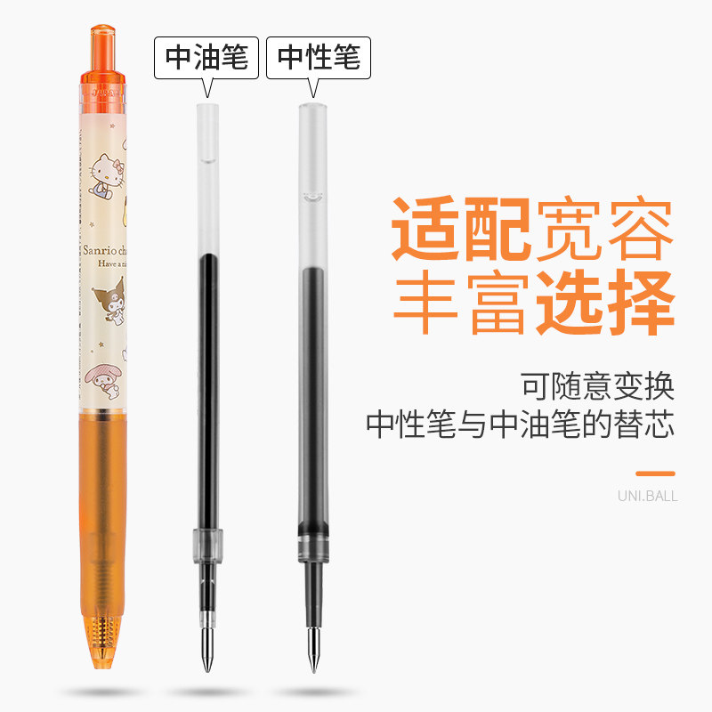 日本UNI三菱书写顺滑中性笔三丽鸥/史努比联名限定款学生用黑色按动中性笔0.5mm卡通图案考试黑笔签字中性笔