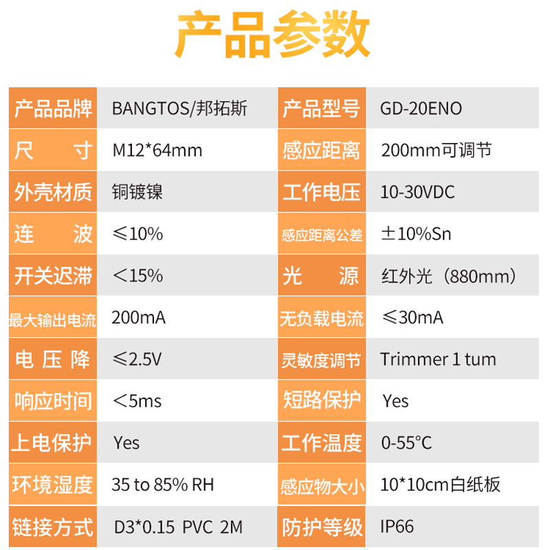 邦拓斯M12漫反射光电开关24V红外感应NPN/PNP电眼传感器GD-20ENO