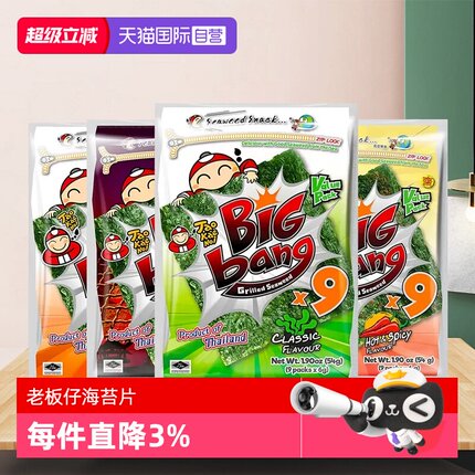 【自营】泰国进口老板仔海苔片烤紫菜大片装小老板拌饭寿司即食