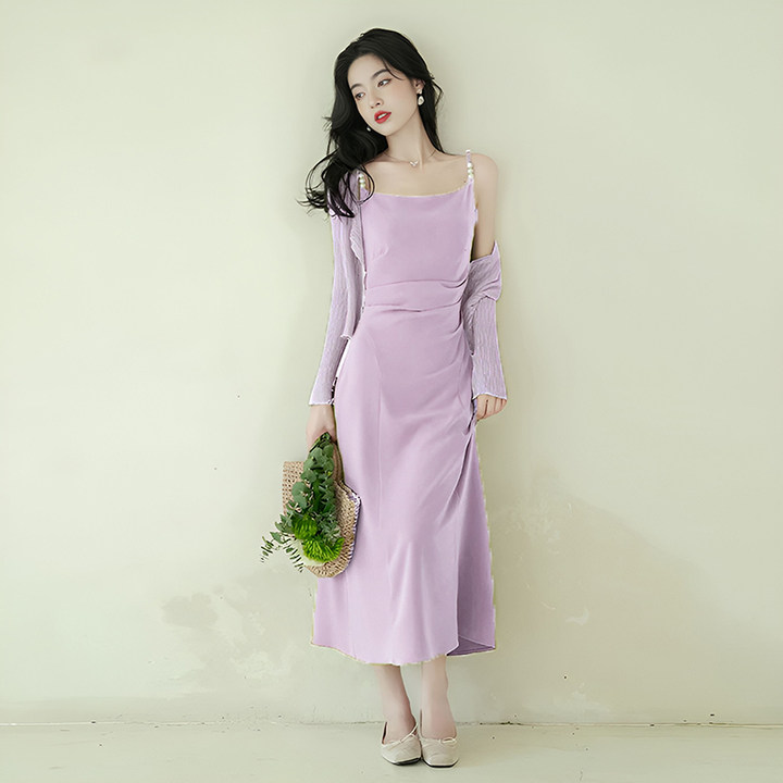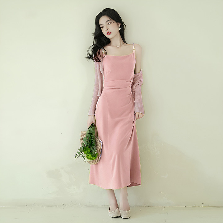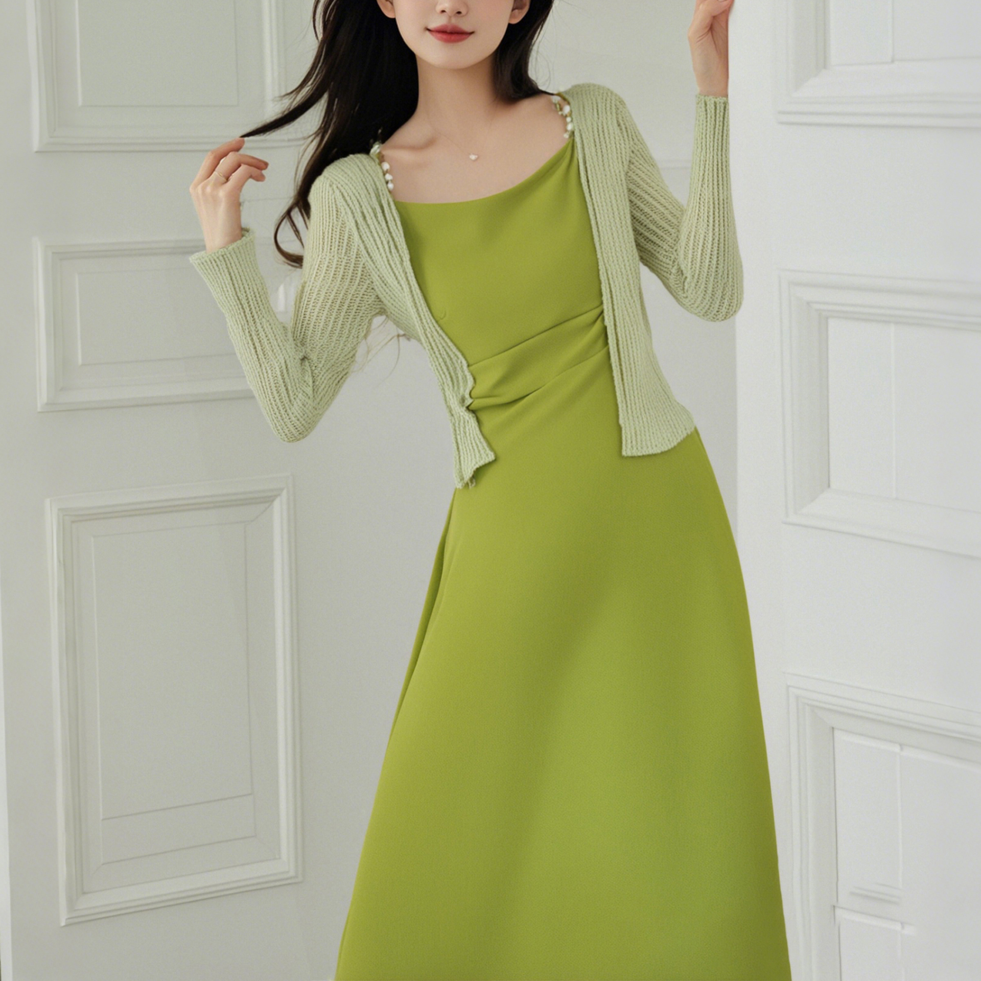 两件套法式绿色连衣裙夏2025新高级感气质绝美超仙吊带开衫6904