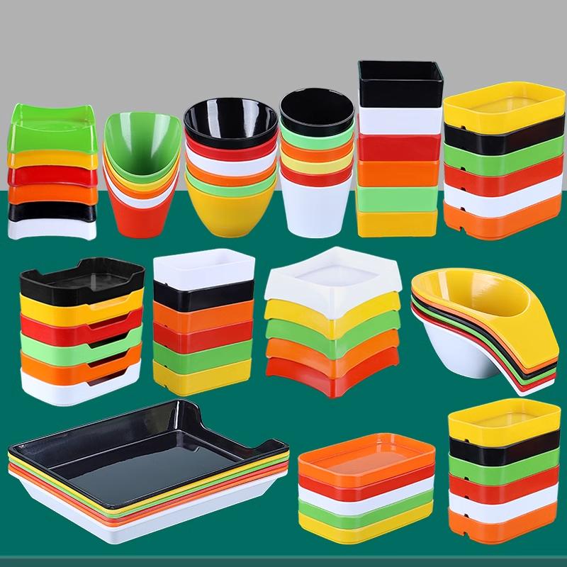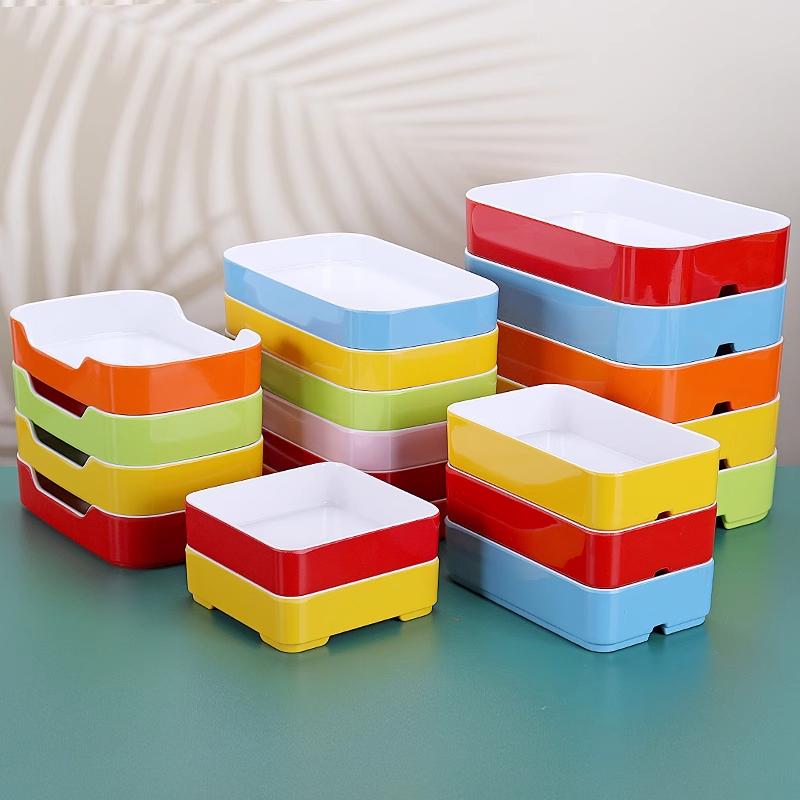 火锅串串密胺仿瓷餐具双色长方形配菜叠加盘子自助烤肉店专用餐盘