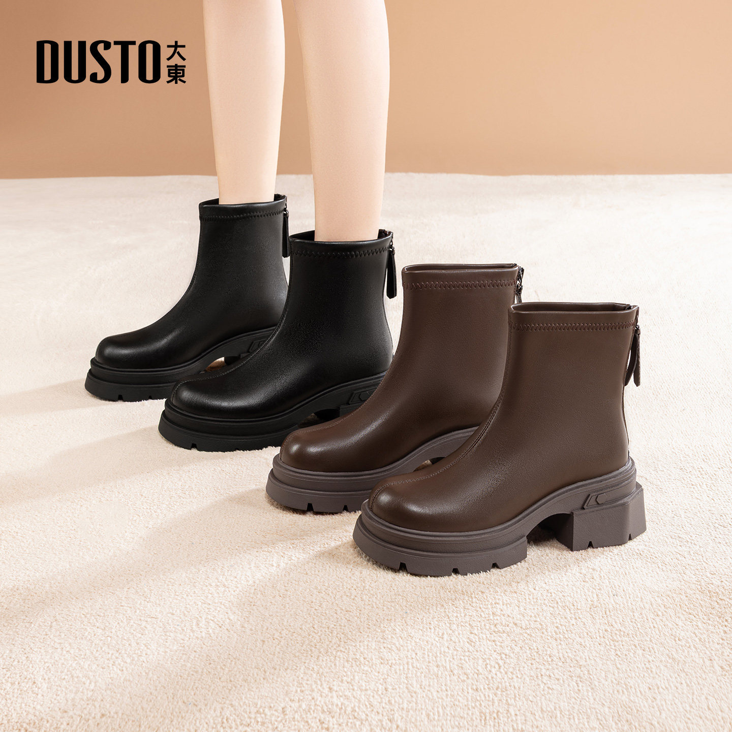 大东dd法式小短靴女高跟鞋冬季踝靴2025新款女鞋粗跟女靴瘦瘦靴子