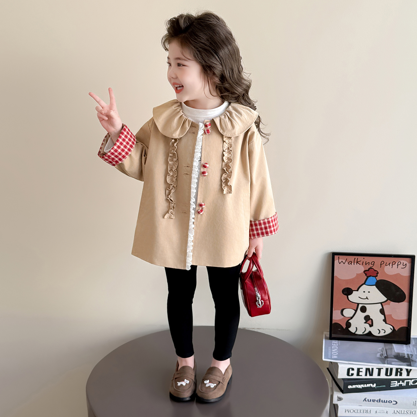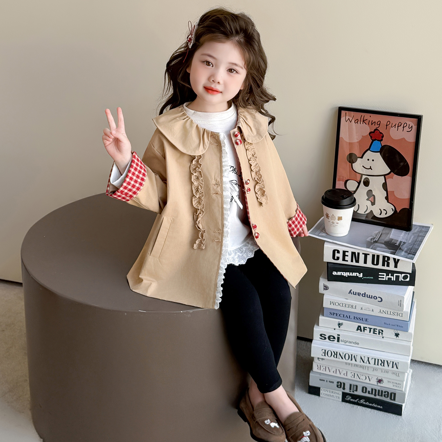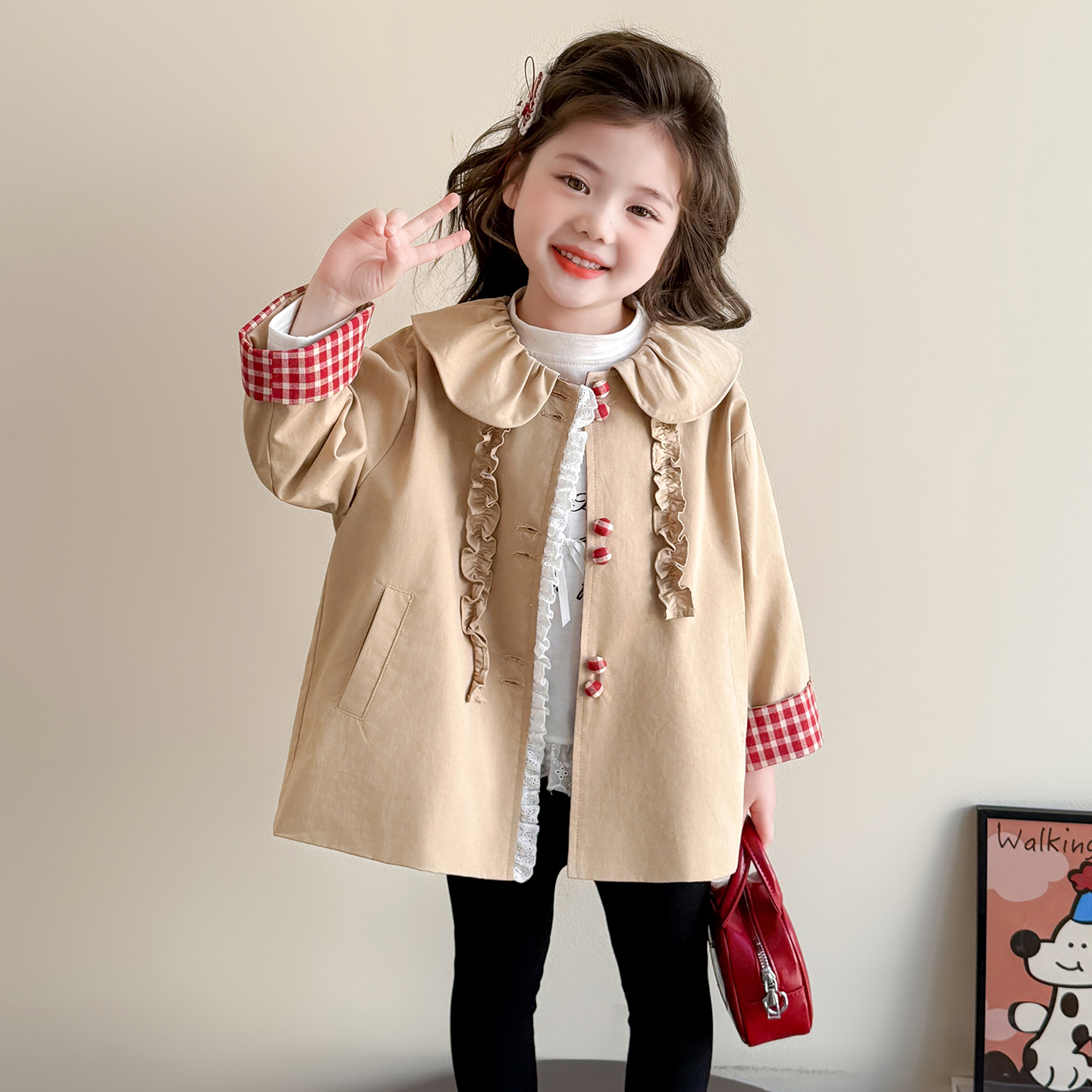 女童春秋款娃娃领风衣外套2025