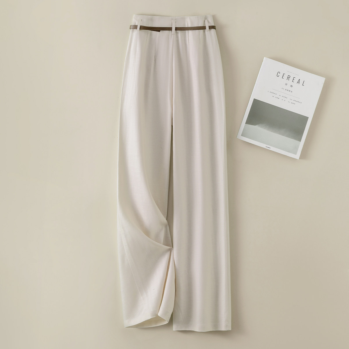 IHIMI海谧莱赛尔亚麻高腰直筒裤女2025夏季新款阔腿裤西装休闲裤