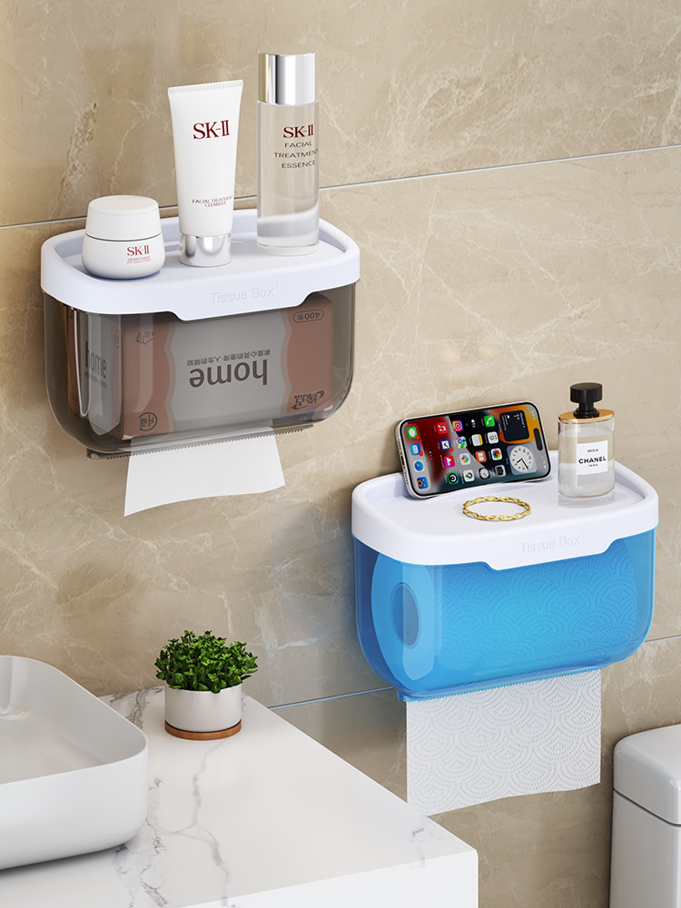 卫生间厕所纸巾盒卷纸盒抽纸盒卫生纸卷纸筒免打孔防水纸巾置物架