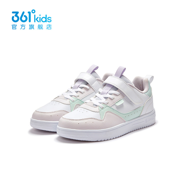 361°女童滑板鞋粘扣新品2025春秋小白鞋儿童革面休闲鞋K82513703