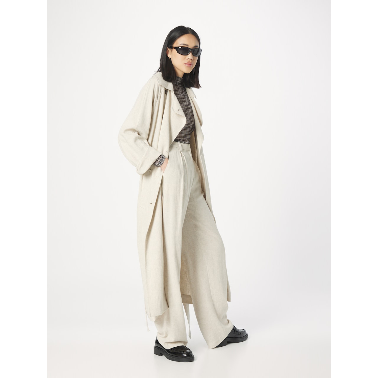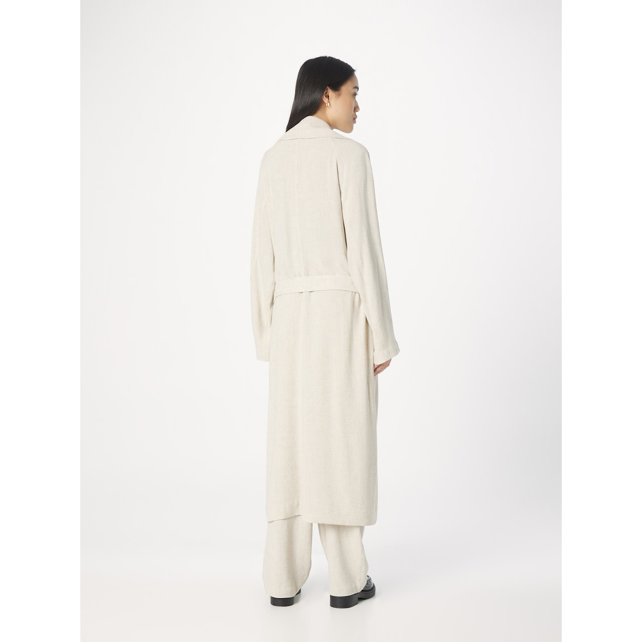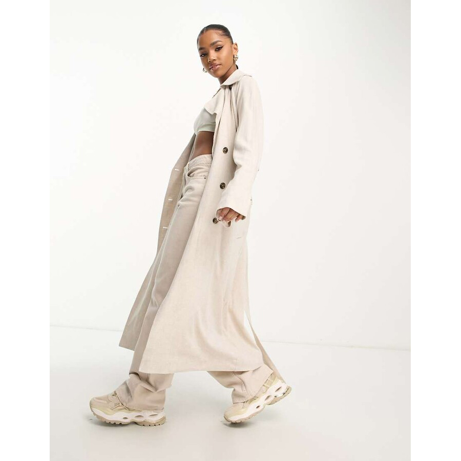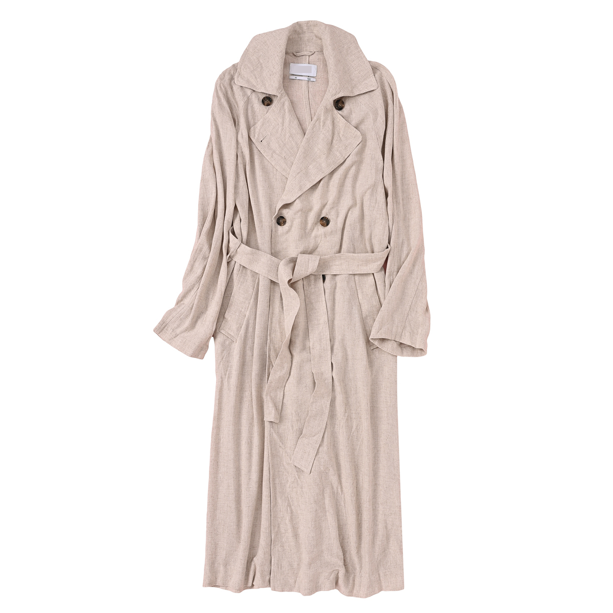 欧美重磅棉麻双排扣宽松显瘦休闲亚麻风衣 外贸原单女装大码春夏