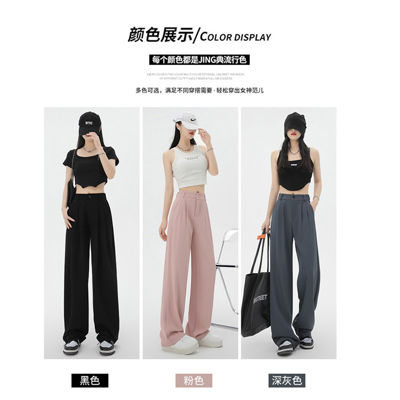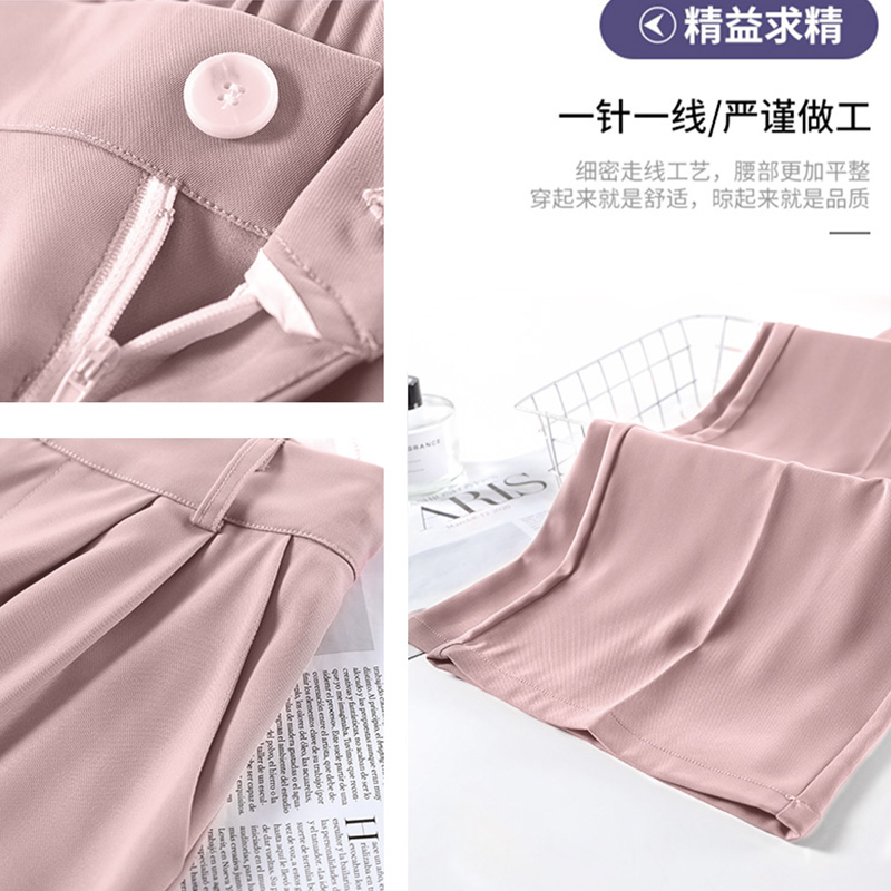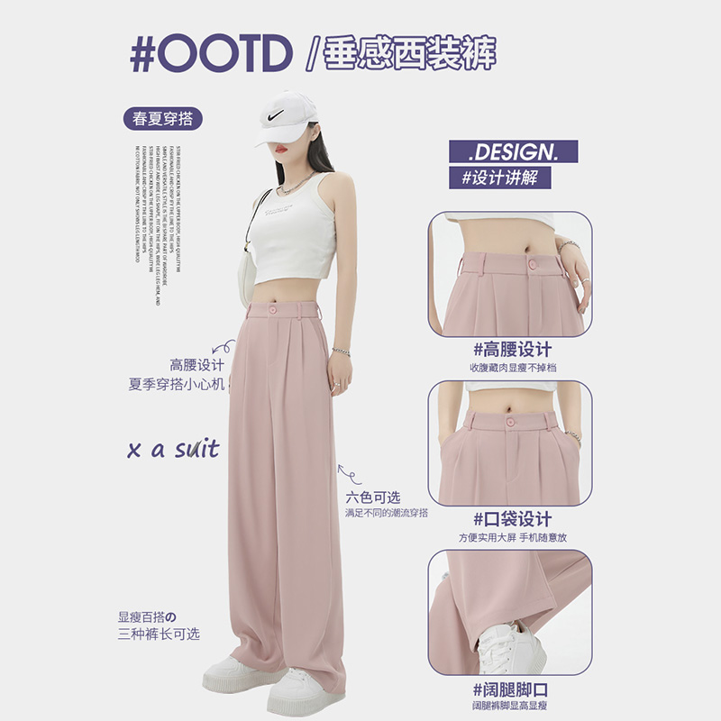 窄版西装裤子女春夏季薄款2025新高腰宽松垂感直筒休闲粉色阔腿裤